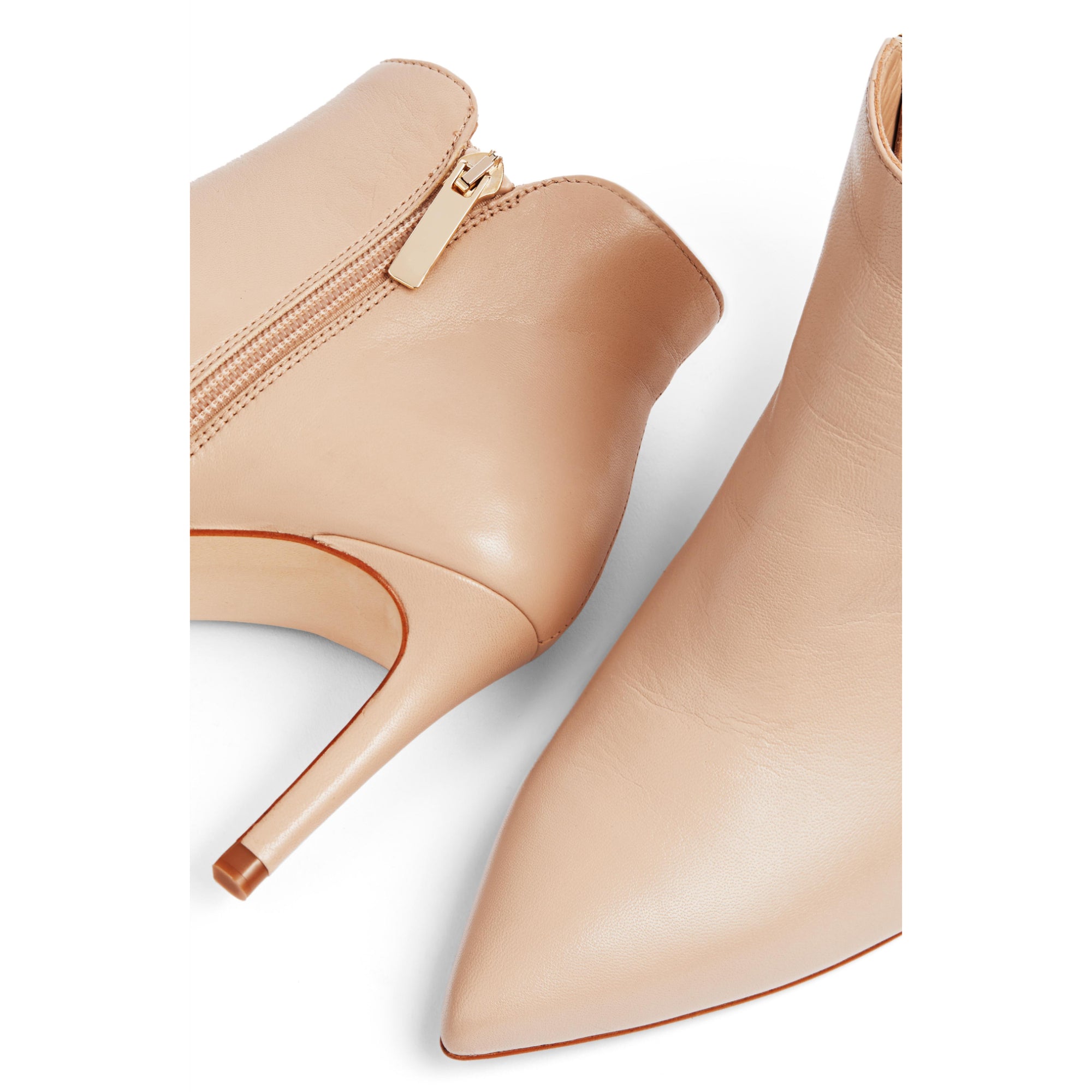 Гладкие и шикарные по форме, ботильоны Corinne из нашей новой коллекции созданы для дней, когда вы хотите чувствовать себя умнее и сексуальнее. С любовью изготовленные в Испании из мягкой кожи наппа цвета палевого дерева, они имеют заостренный носок, отделку из золотых самородков на изогнутом верхе, внутреннюю молнию и 80-миллиметровый каблук-шпильку, обтянутый кожей. Наденьте их и покорите свой день.