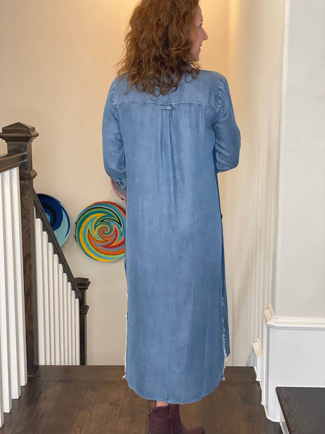 Изготовленное из 100% лиоцелла, это платье-рубашка имеет подол с высокой-низкой и стильную бахрому, которая спускается ниже колена. Застежка на пуговицы обеспечивает гибкость. Просто постирайте в стиральной машине на щадящем режиме и высушите в стиральной машине на низкой скорости для долговременной мягкости.