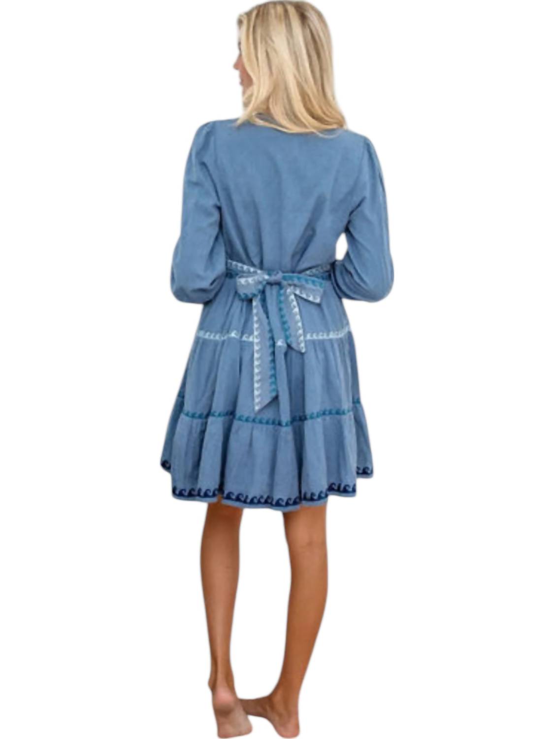Мини-платье с длинными рукавами. Детали с волнистой вышивкой рикрак. В комплект входит пояс с волнистой вышивкой. Изготовлено из 100% хлопка.