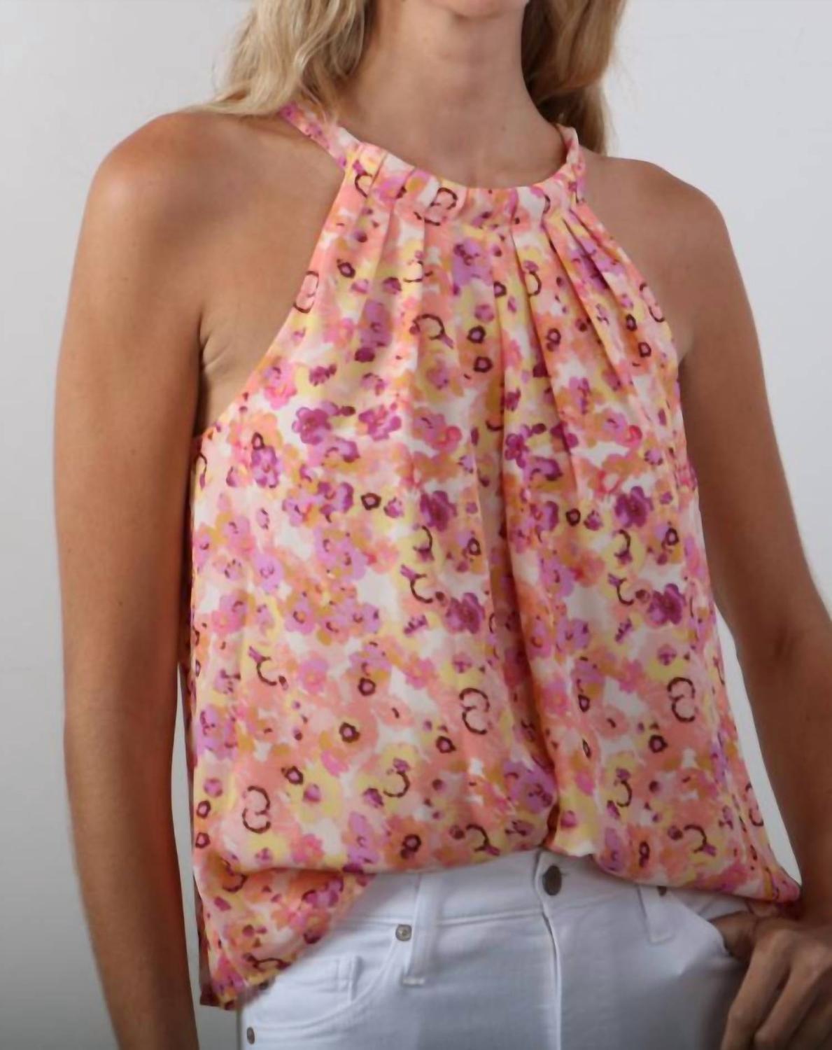Плиссировка. Завязка на шее. Регулируемый завязочный воротник. Свободный крой. Цветочный принт. 100% полиэстер. Машинная стирка в холодной воде.