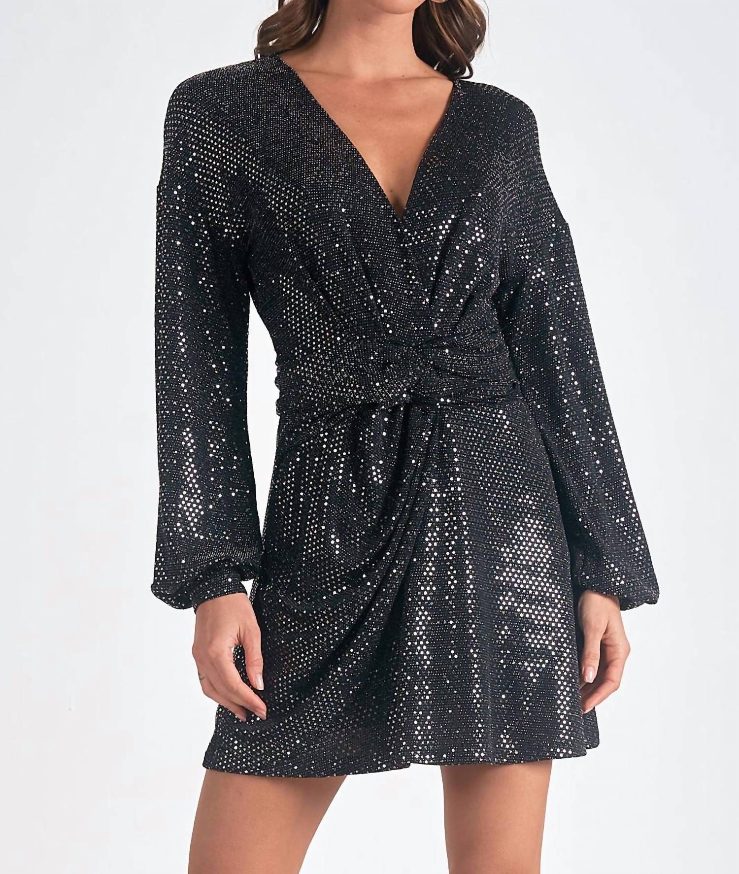 Идеальное платье с длинными рукавами для прохладных месяцев. Платье-халат с глубоким вырезом и сборкой спереди, расшитое пайетками.