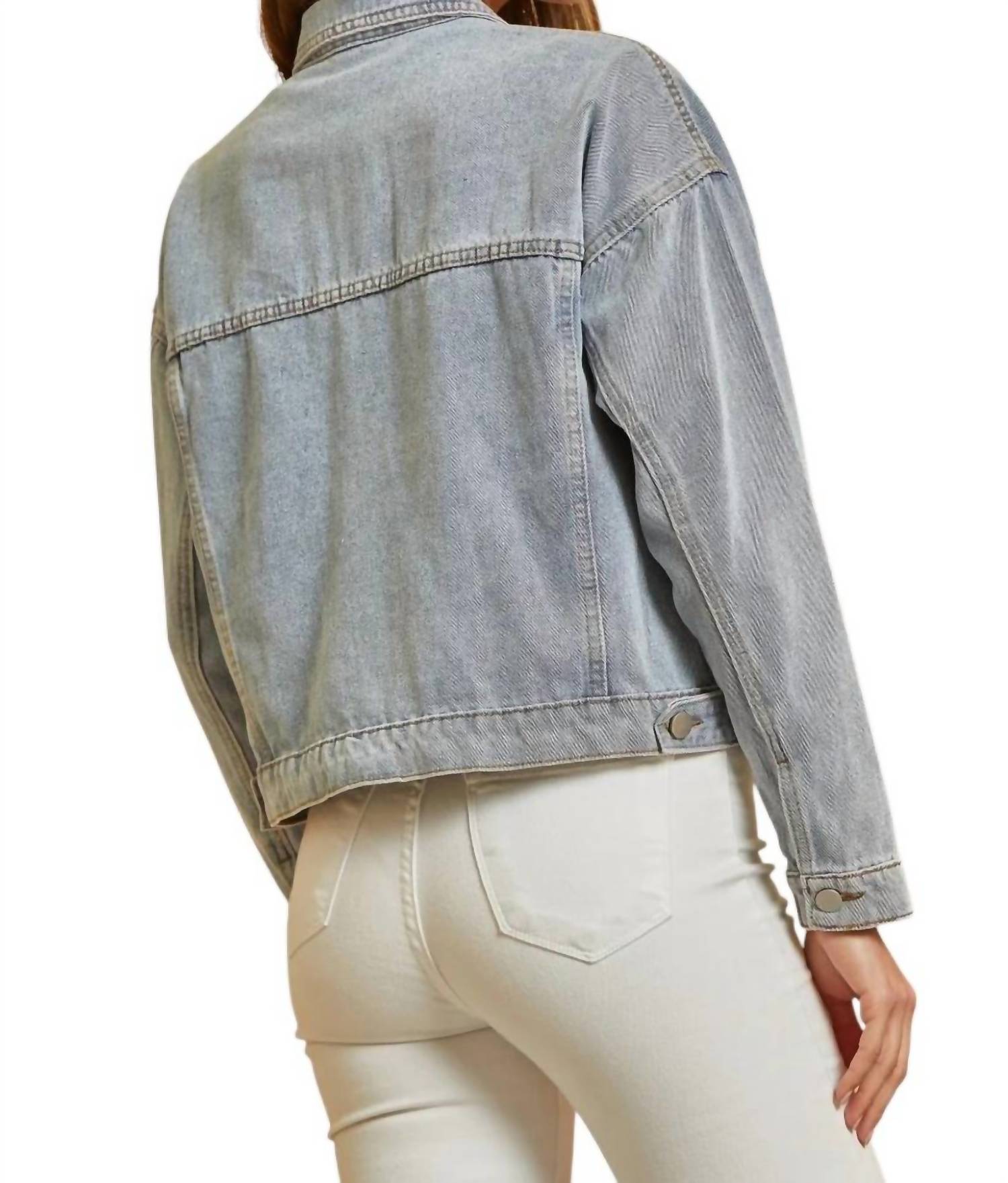 Эта джинсовая куртка имеет акценты с необработанными краями спереди и сзади, слегка свободный крой. Длинные рукава, воротник, застежка на пуговицы и двубортный дизайн. Изготовлена из 78% хлопка и 22% полиэстера.