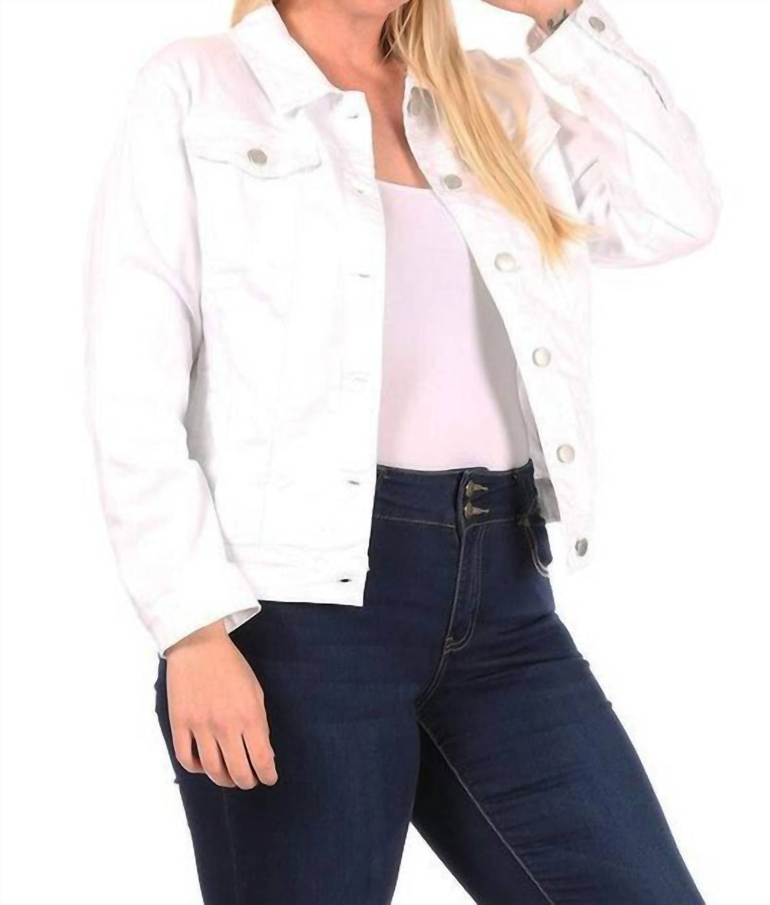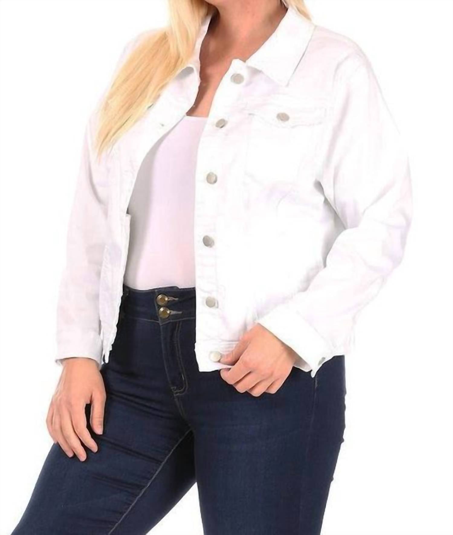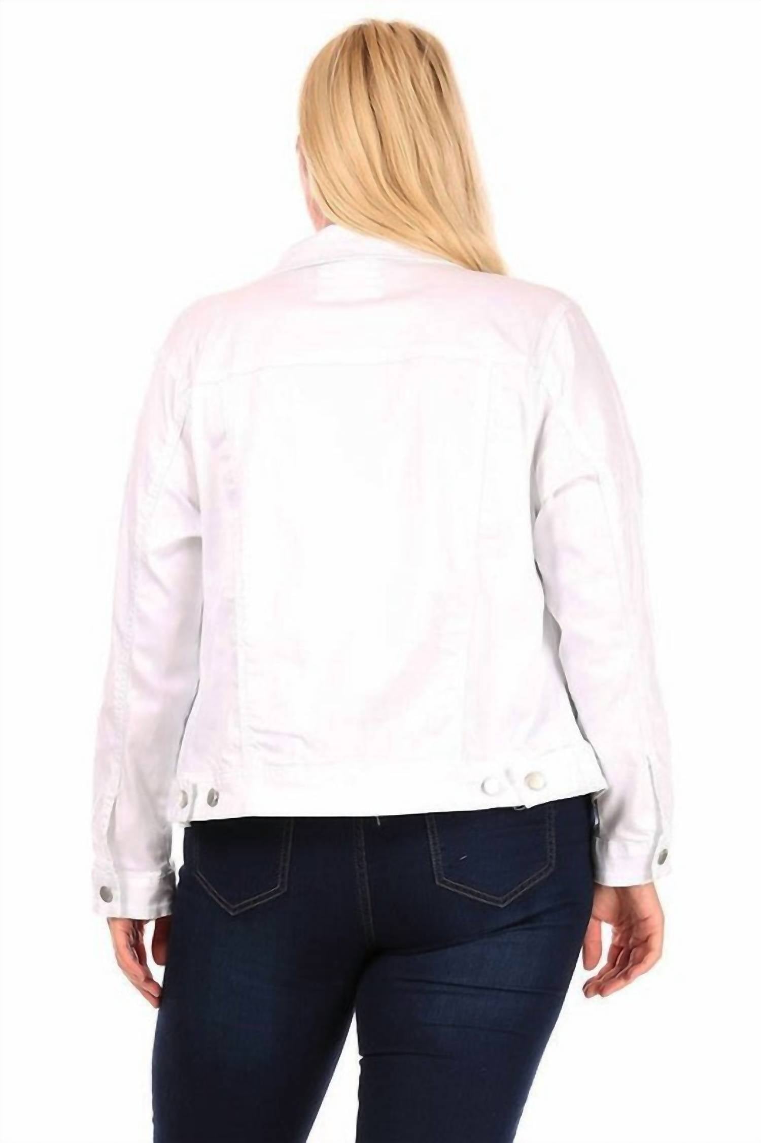 Эта джинсовая куртка имеет классический воротник, застежку на пуговицы спереди, нагрудные карманы и длинные рукава. Изготовлена из 64% хлопка, 24% полиэстера, 10% вискозы и 2% спандекса.