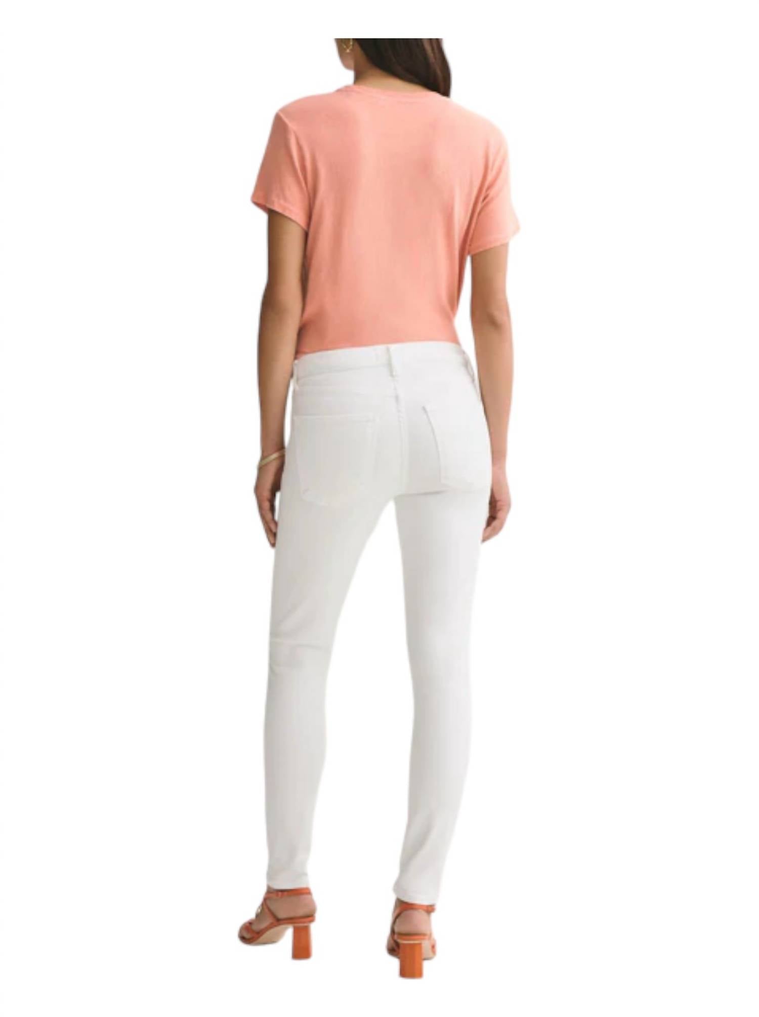 Джинсы средней посадки Ankle. Классическая средняя посадка. Ультраузкий крой, подчеркивающий изгибы и удлиняющий ноги. Изготовлены из эластичного денима. 90% хлопка, 6% переработанного хлопка, 3% T400, 1% эластана.