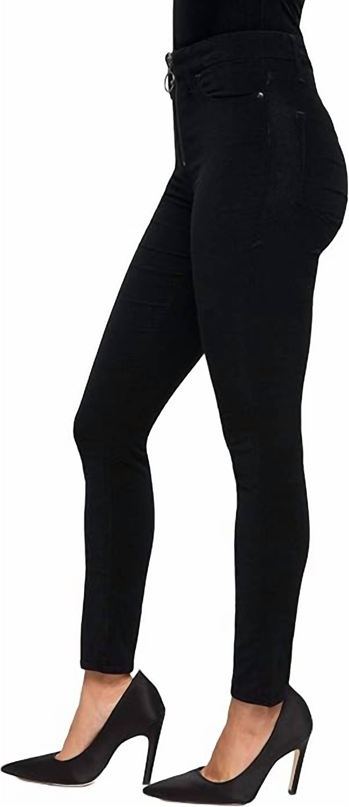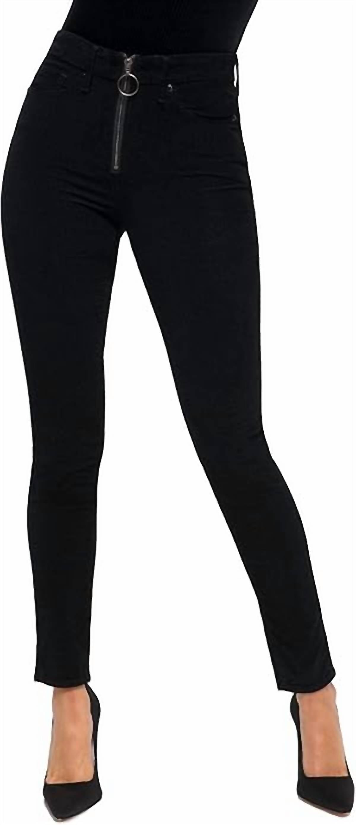 Черные бархатные брюки. Высокая талия. Длина до щиколотки. Открытая серебряная молния-кольцо спереди.