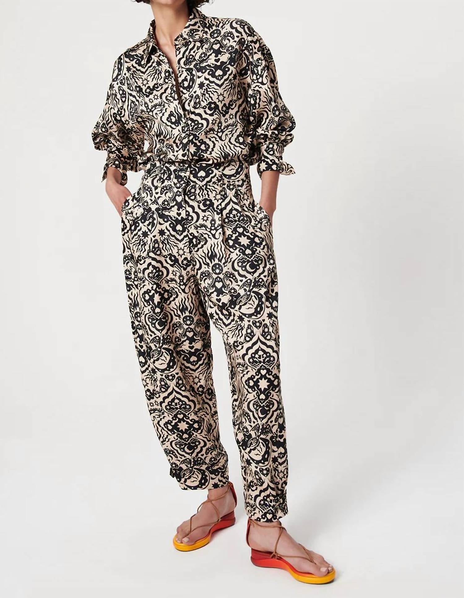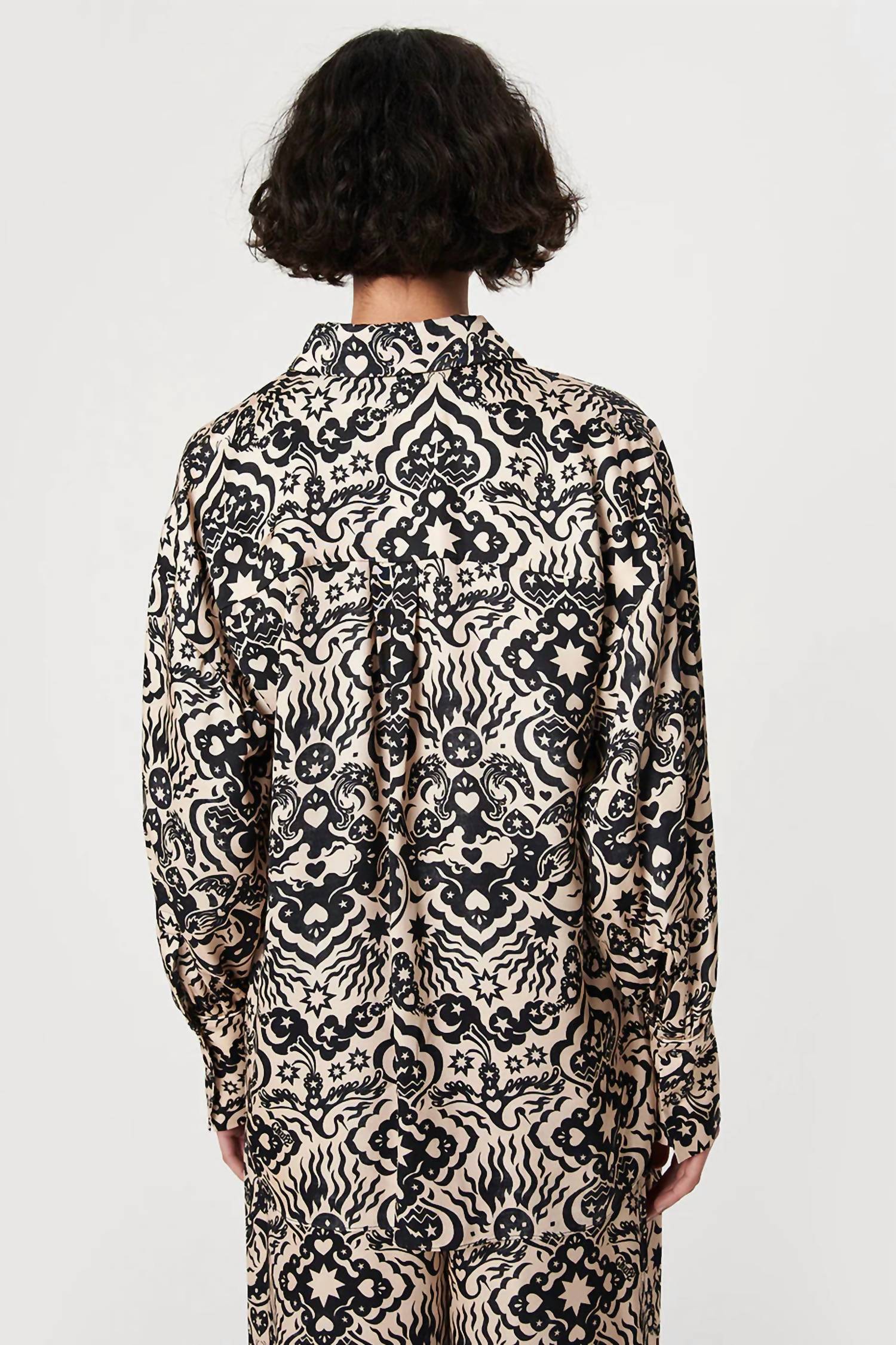 Эта рубашка Liv Button Down с психоделическим трафаретным принтом и широкими манжетами с тканевыми пуговицами. Изготовленная из 100% атласной вискозы, она предлагает классический крой с современным оттенком и хорошо сочетается с подходящими брюками или многослойными образами.