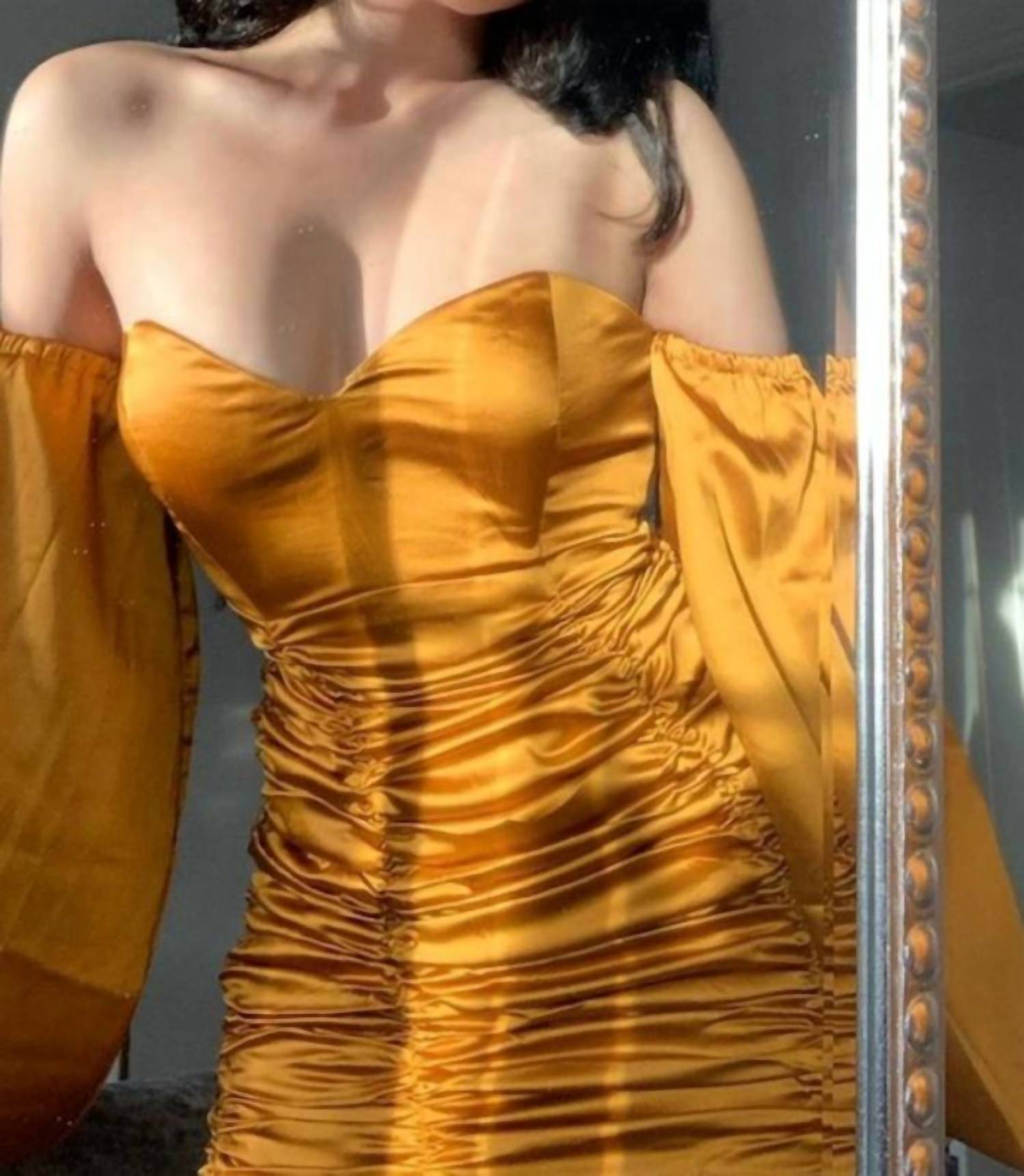 Короткое и воздушное платье для теплых дней. Наше мини-платье Drusilla Pouffe имеет длину мини, вырез в форме сердечка, косточки по всей груди, длинные рукава-фонарики с открытыми плечами и эластичными манжетами, сборку по всему лифу, открытую металлическую молнию по центру спины.