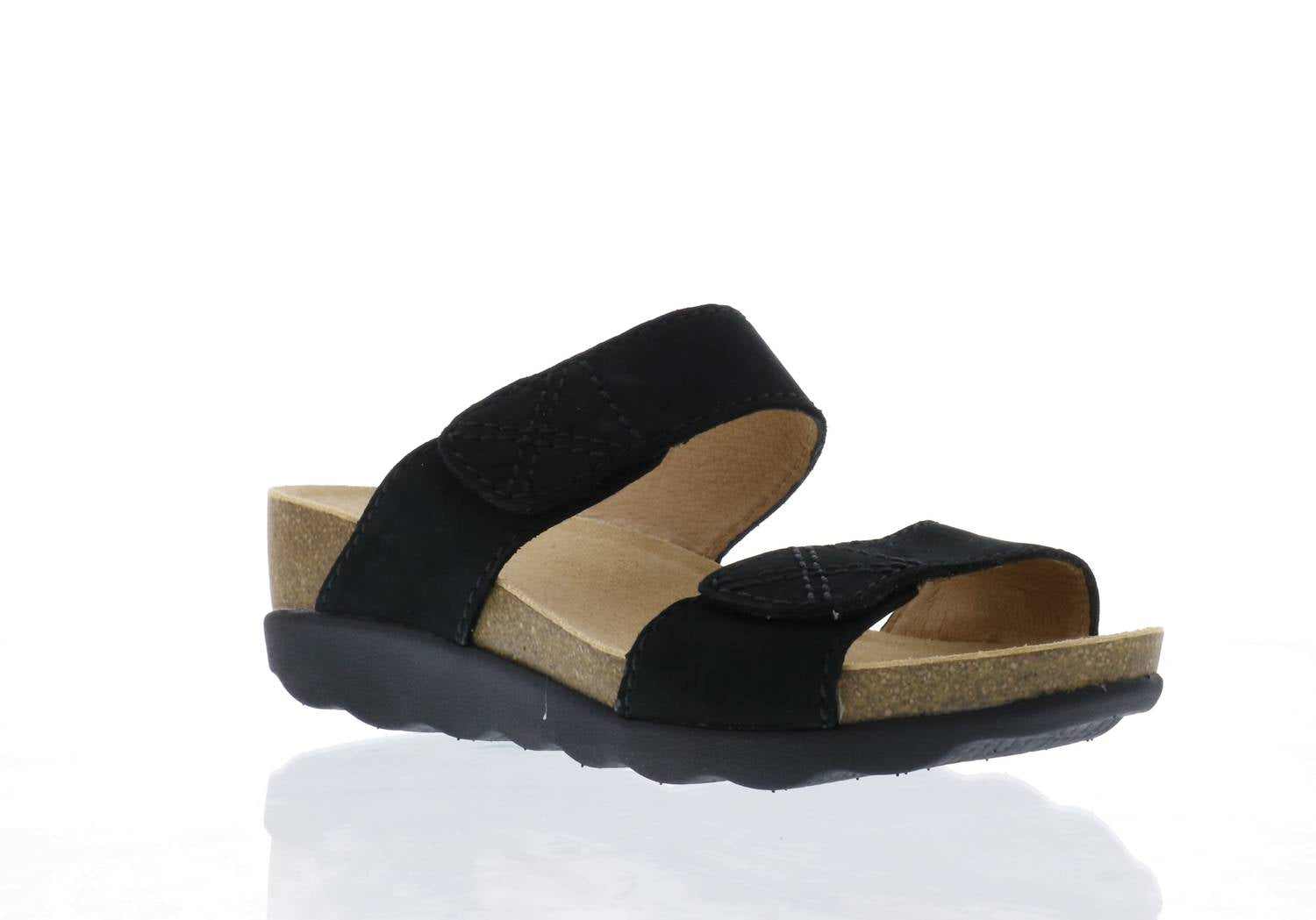 Верх из кожи. Подкладка из искусственного материала. Открытый носок. Подкладка из кожи для плавного хода. Регулируемые ремешки. Каблук-танкетка. Застежка-липучка. Подошва из искусственного материала. Импортные. Размеры: высота каблука — 2 дюйма, вес — 7 унций, высота платформы — 1 дюйм.