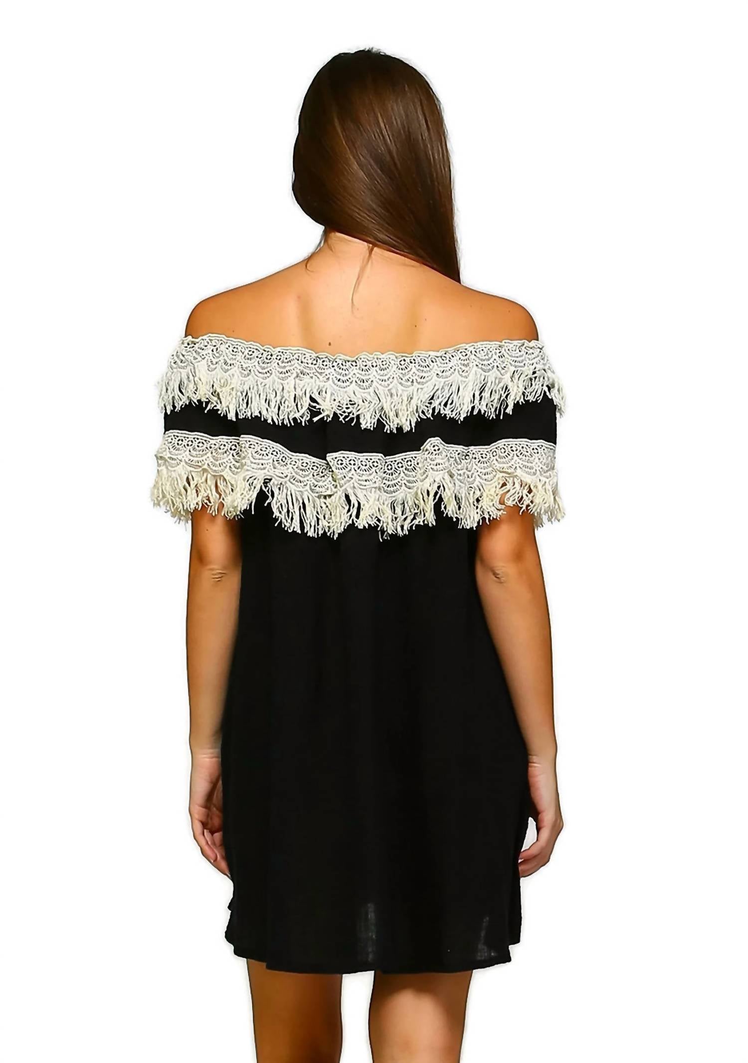 Вырез с открытыми плечами, отделка бахромой крючком, легкий хлопок и мини-силуэт. Маленькая грудь 38" L 30". Средняя грудь 40" L 30.5". Большая грудь 42" L 31". 1X Бюст 44" L 31". 2X Бюст 46" L 31.5". 3X Бюст 48" L 32". 100% хлопок.