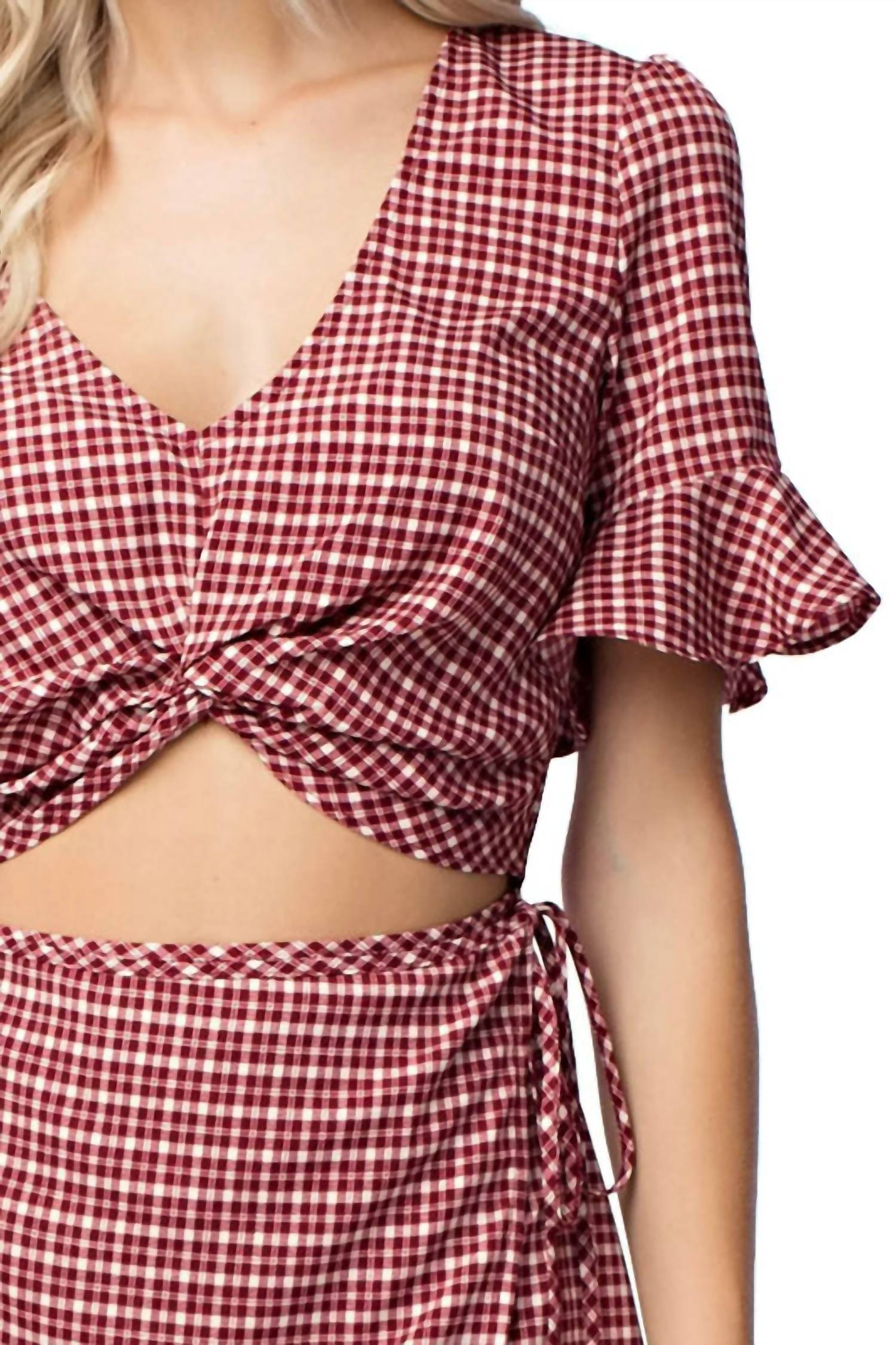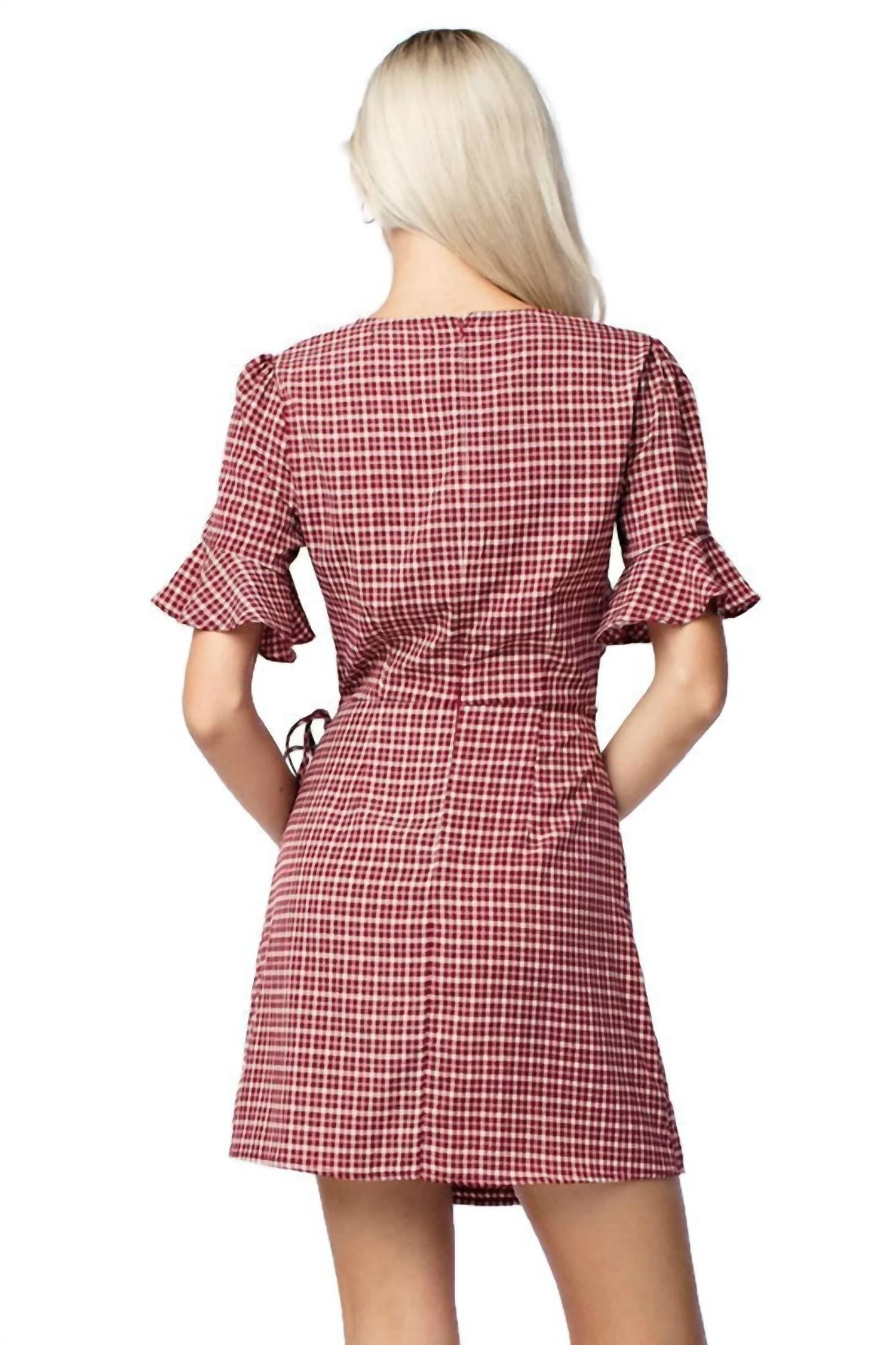 Глубокий V-образный вырез, короткие рукава с оборками, вырез на талии, юбка с имитацией запаха и приталенный силуэт. Очень маленькая грудь 32", длина 32". Маленькая грудь 34", длина 33". Средняя грудь 36", длина 33". Большая грудь 38", длина 34".