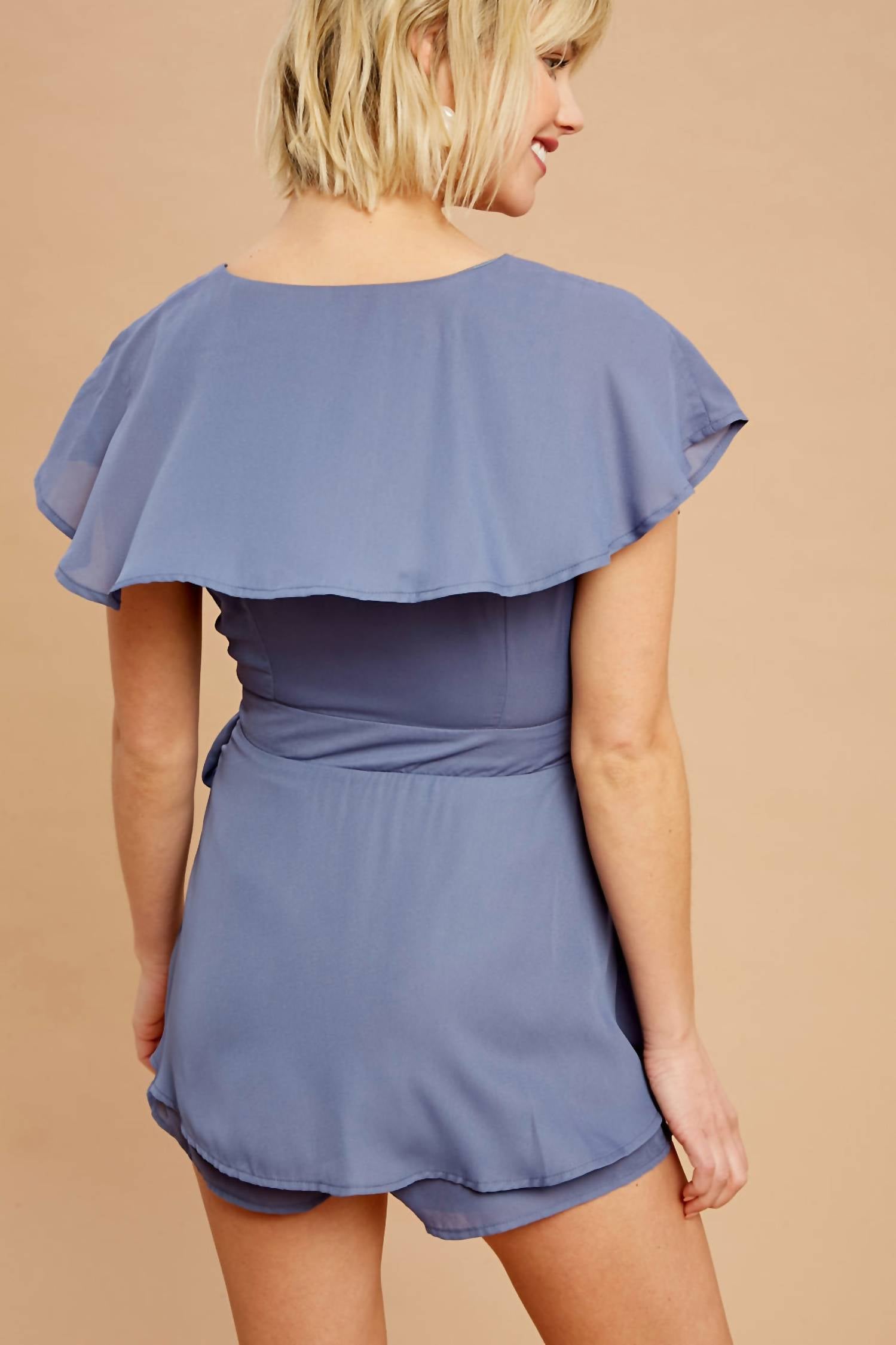 Этот комбинезон имеет широкий шифоновый лацкан, завязку на талии, фасон с запахом, застежку-молнию, полную подкладку и забавный кокетливый подол. Маленькая грудь 34". Средняя грудь 36". Большая грудь 38". Длина внутреннего шва примерно 3". Фактурный шифон. 100% полиэстер. Ручная стирка или химчистка.