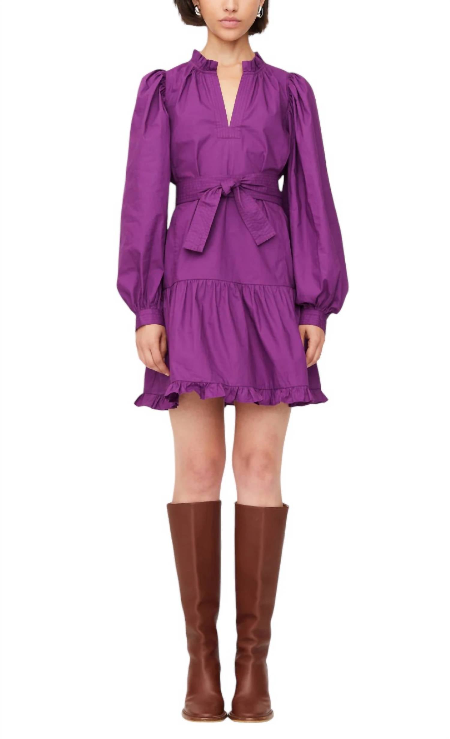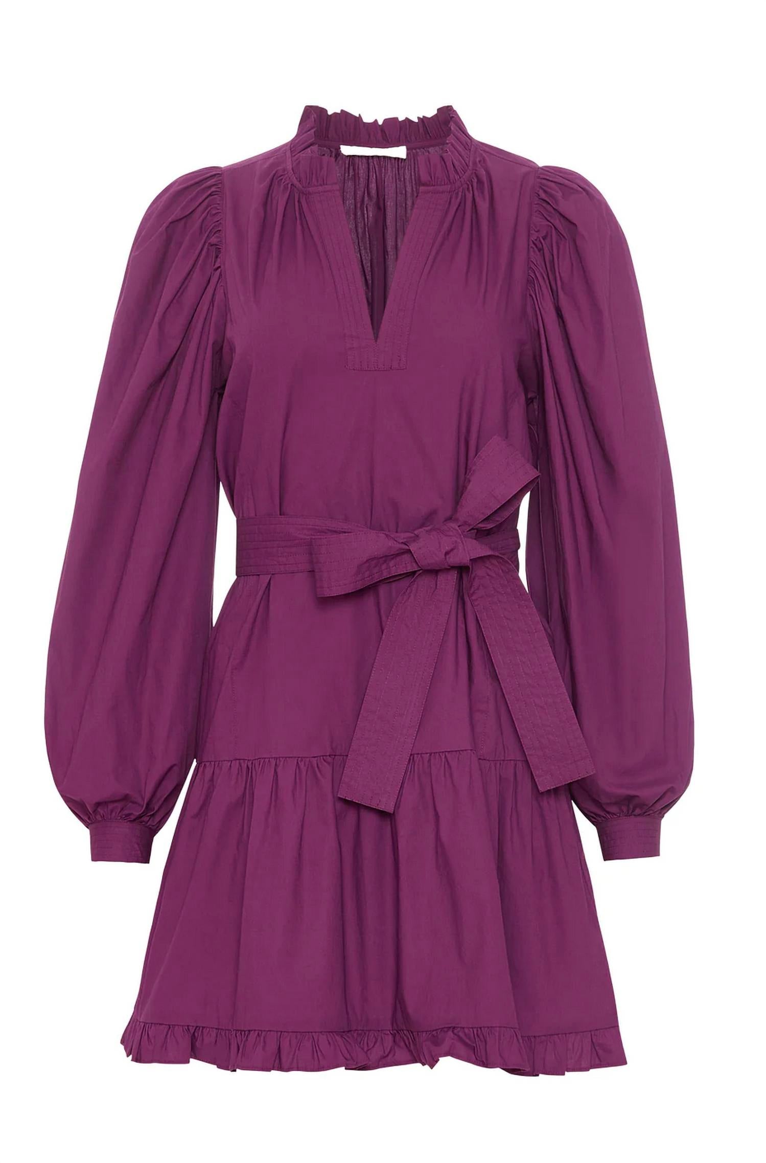 Платье Nella отличается романтическими деталями, такими как рукава-фонарики, манжеты, нежная плиссировка и оборки вдоль подола и выреза. С заниженной талией, пышной юбкой и дополнительным поясом-завязкой это глубокое платье цвета сливы и фиолетового цвета идеально подходит для осени. Изготовлено из 100% хлопка, без подкладки и соответствует размеру.