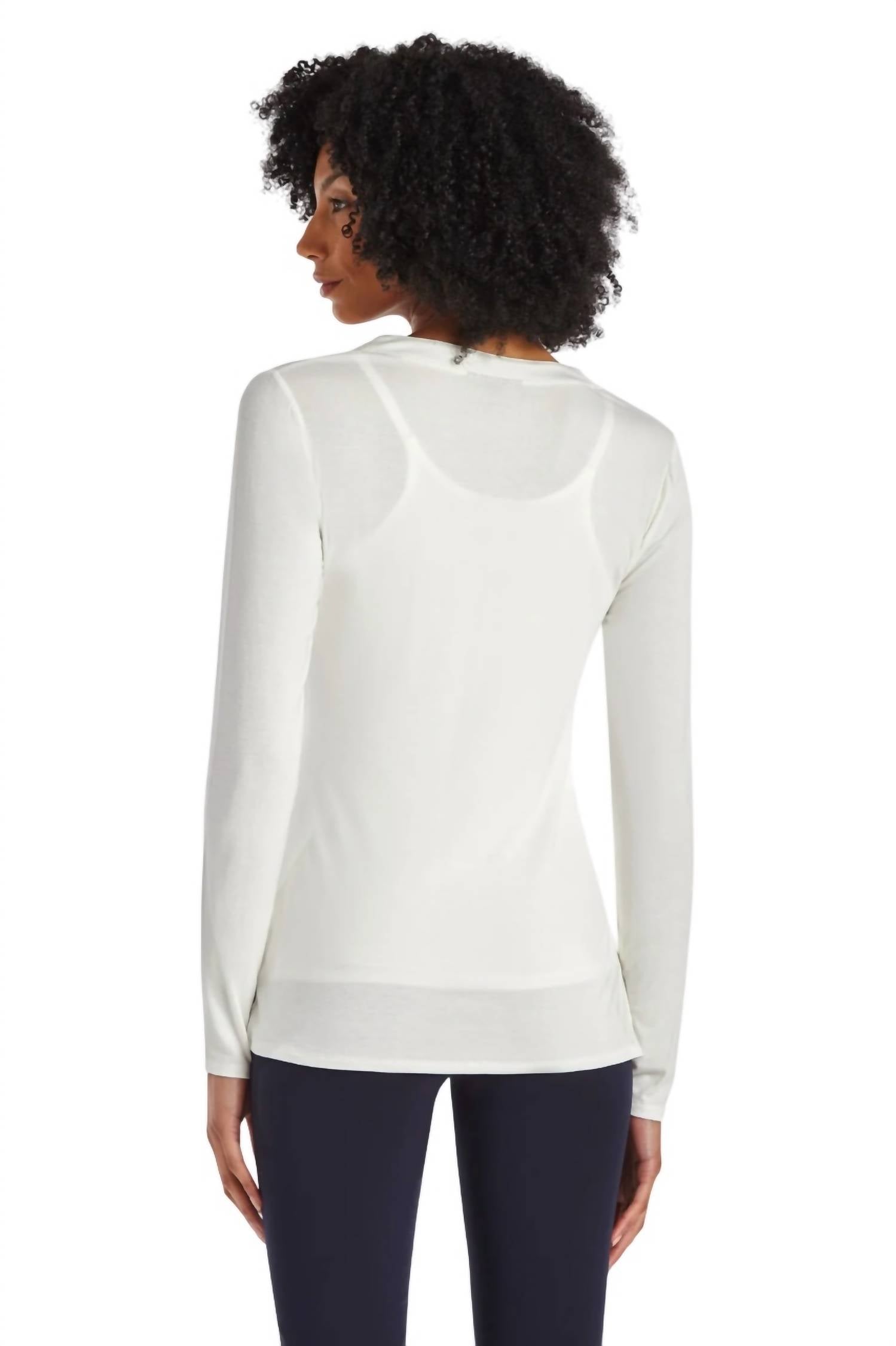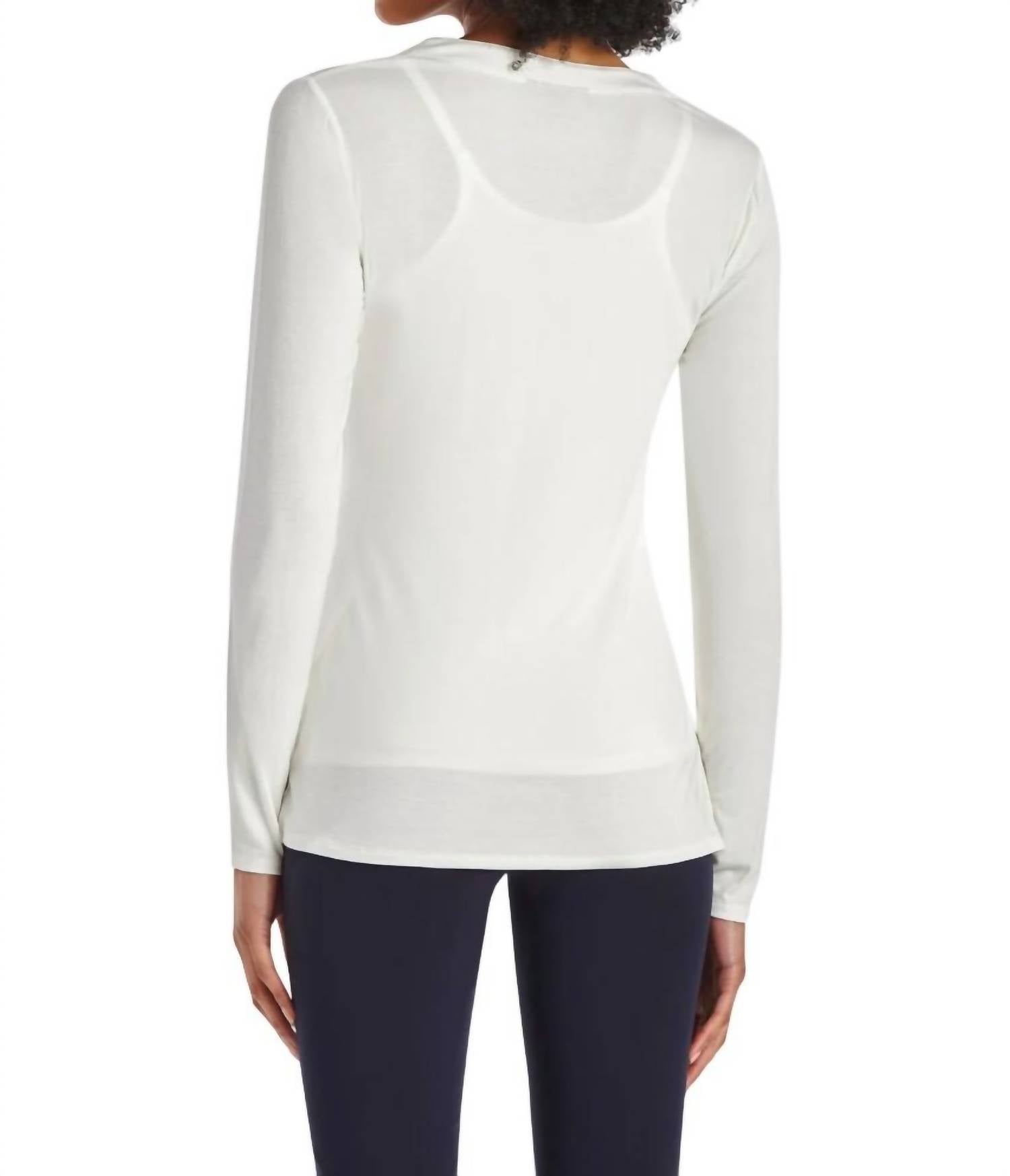 Рост модели 5 футов 10,5 дюймов, размер S. 90% вискоза, 10% нейлон. Машинная стирка в холодной воде, не отбеливать, сушить на горизонтальной поверхности, гладить при низкой температуре при необходимости или химчистка. Импортная. Классический крой. Глубокий V-образный вырез и длинные рукава. Прямой подол. Фасон пуловера.