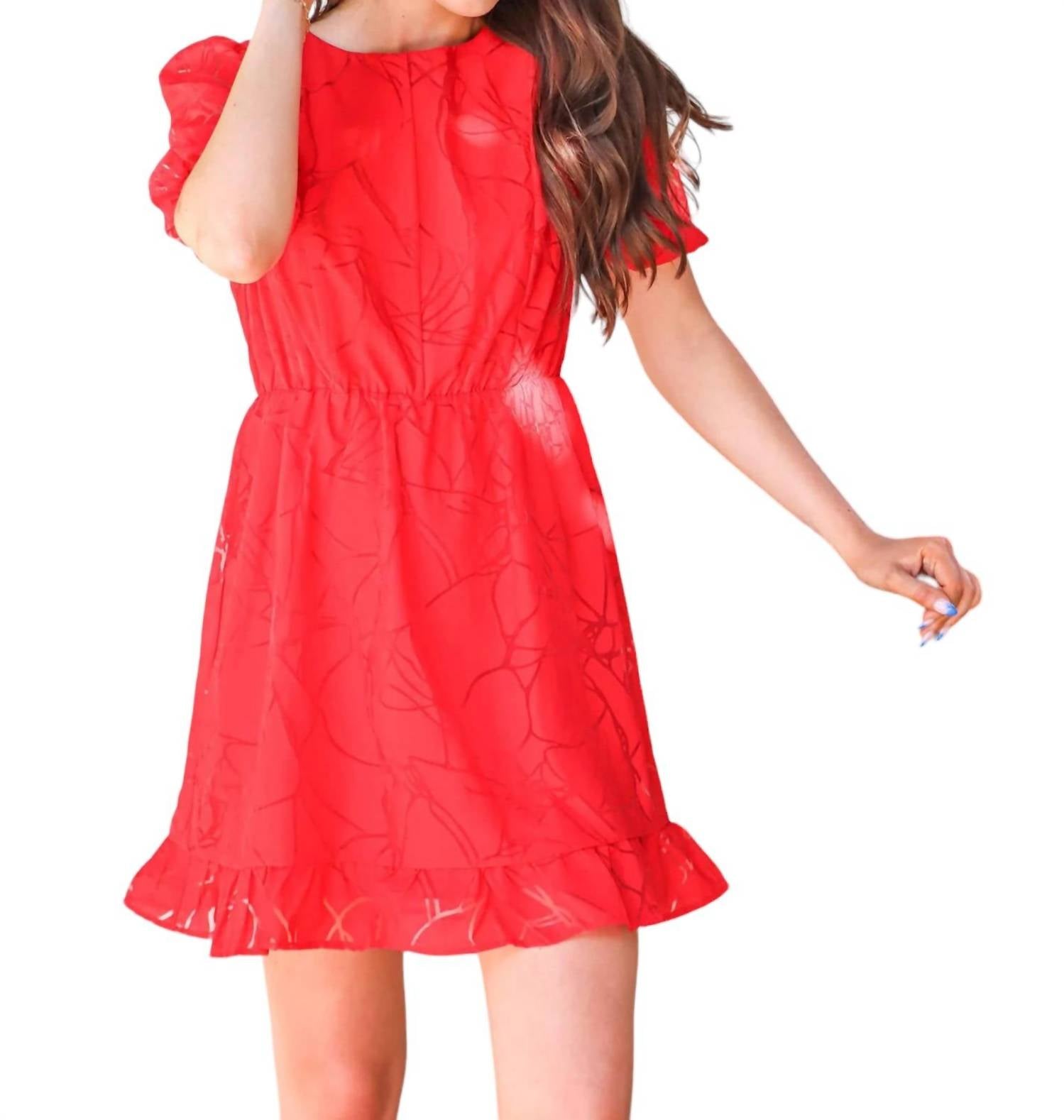 Это платье имеет вырез-лодочку, короткие пышные рукава с эластичными собранными краями и присборенную талию до низа А-силуэта. Оно также имело вырез в форме сердца на спине и 3 пуговицы сверху сзади для застежки.