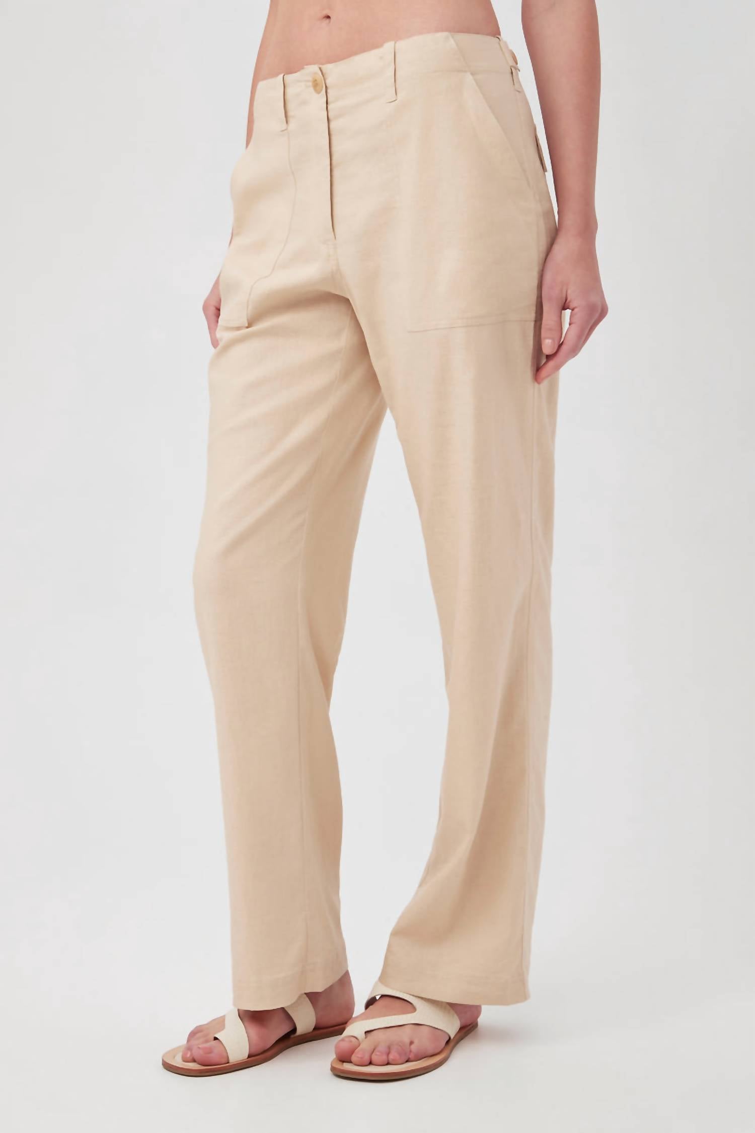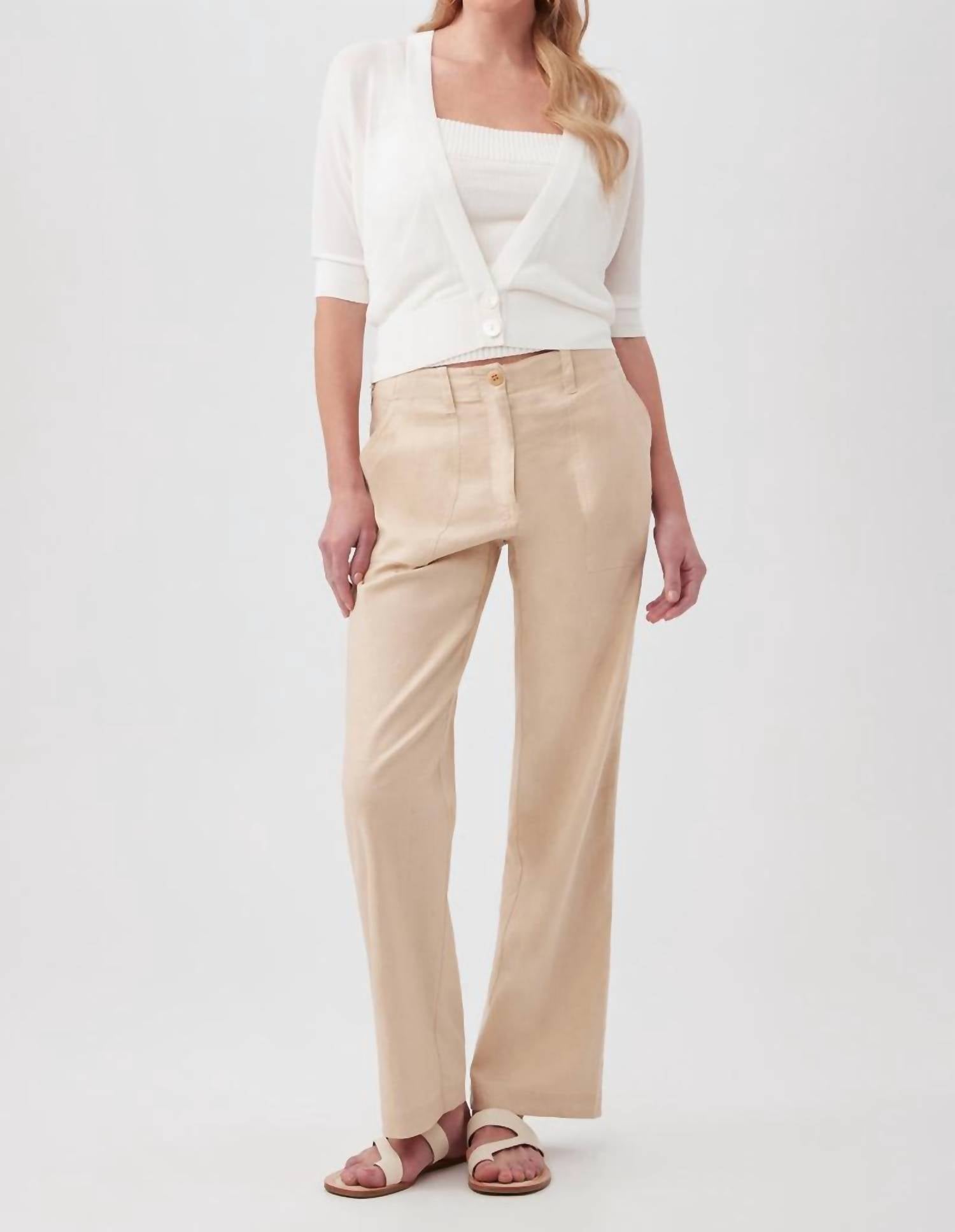 Эти брюки Antonia имеют высокую посадку, прямой крой с передними карманами и акцентированной строчкой. Изготовлены из льняной ткани (55% лен, 42% вискоза, 3% спандекс), с внутренним швом 31,5 дюйма и застежкой-молнией на пуговицу для комфорта и стиля.