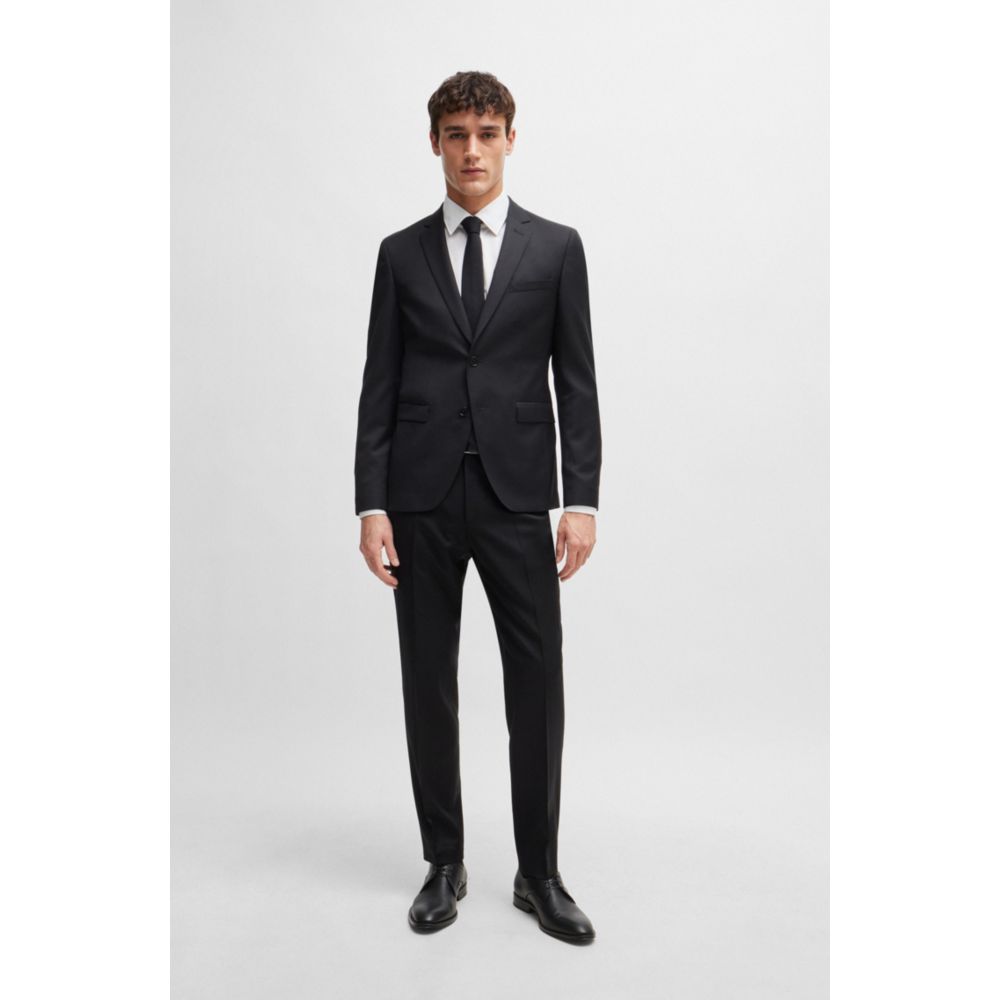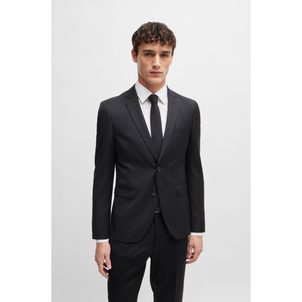 Однобортный пиджак из натуральной шерстяной саржи BOSS, черный