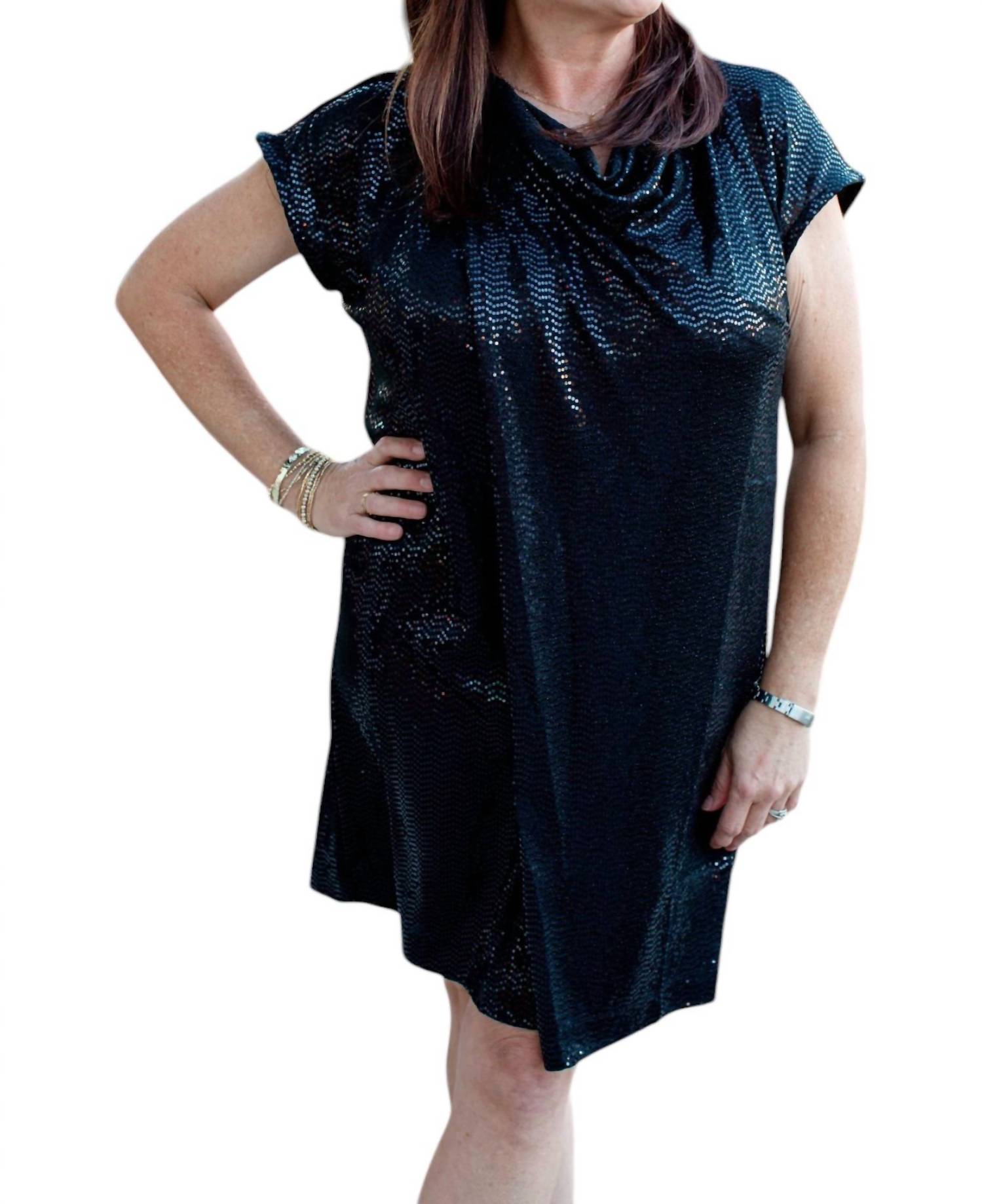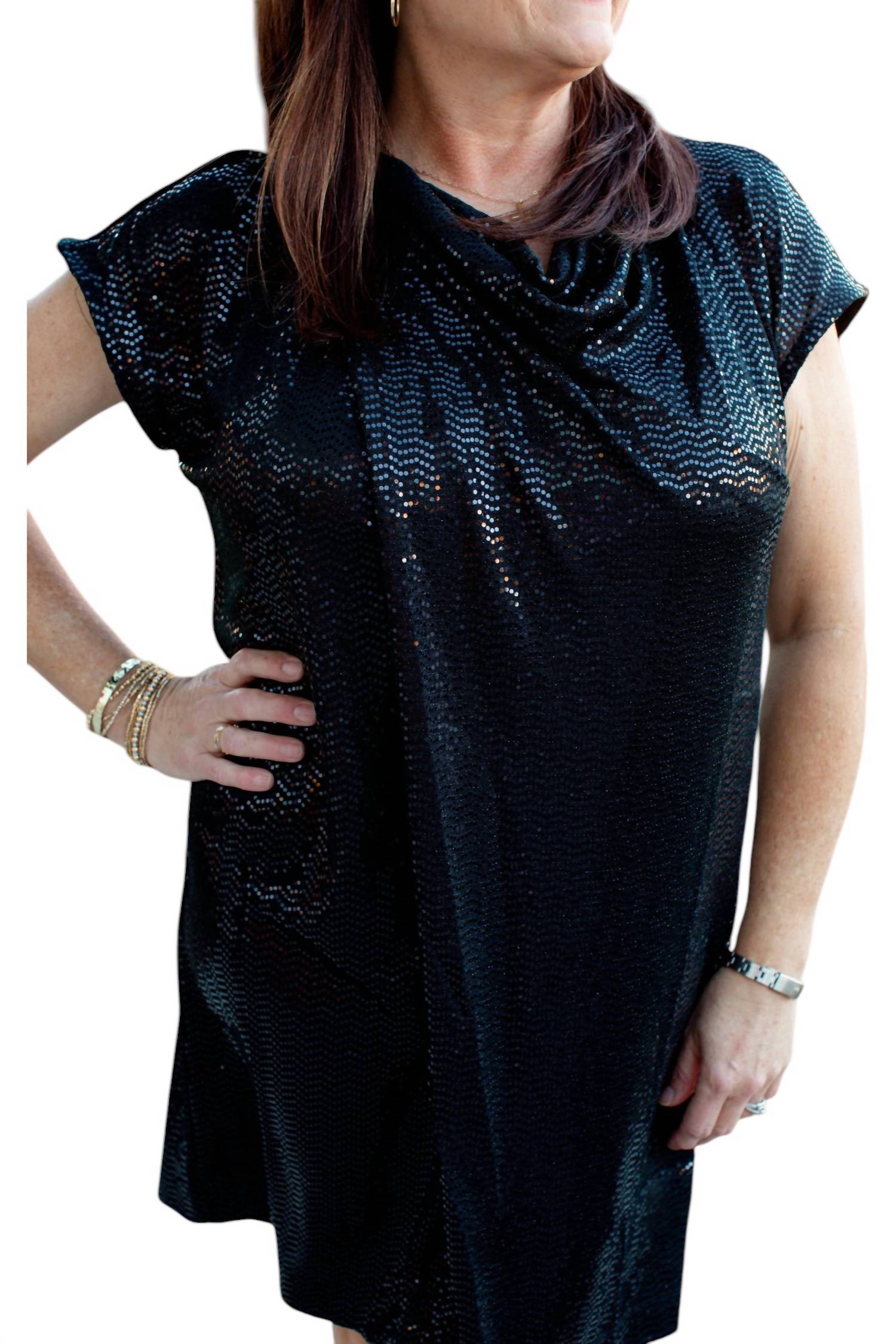 Очаровательное черное мини-платье с пайетками. Короткие рукава и облегающий силуэт. Дополняется стильным воротником-хомутиком. Наслаждайтесь легкостью застежки-липучки. Гарантирует, что вы будете сиять без усилий. Немного блеска в вашем гардеробе, не жертвуя шиком.