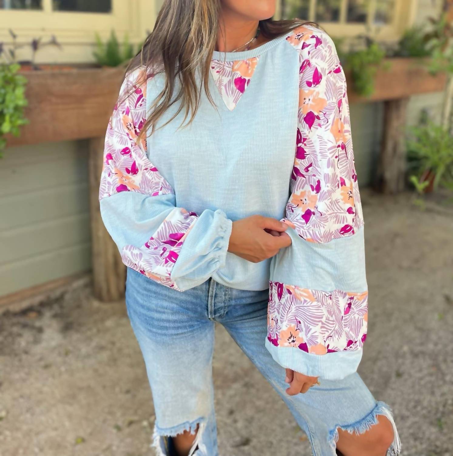 Отличная посадка, милый дизайн, мягкая ткань. Вам понравится все в этой футболке с длинными рукавами. Топ с длинными рукавами Tyler с цветочным принтом, вырезом-лодочкой и длинными расклешенными рукавами.