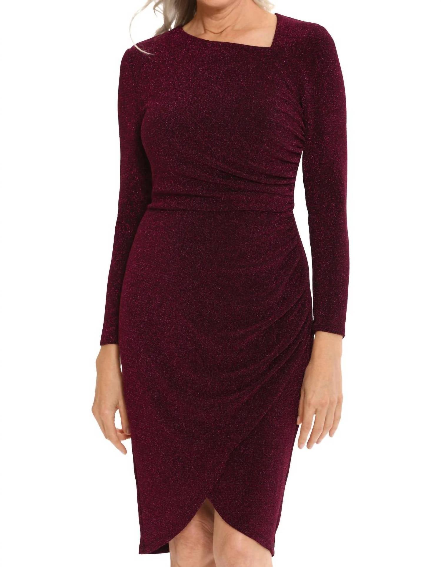Сияйте, как ночное небо в платье Maggy London Dovana Magenta Lurex ! Это потрясающее платье с мерцающими, блестящими деталями идеально подходит для свадеб, праздников или любой вечеринки. Юбка-тюльпан и асимметричный вырез добавят уникальный и модный штрих к вашему гардеробу. Сияйте и сияйте всю ночь напролет!