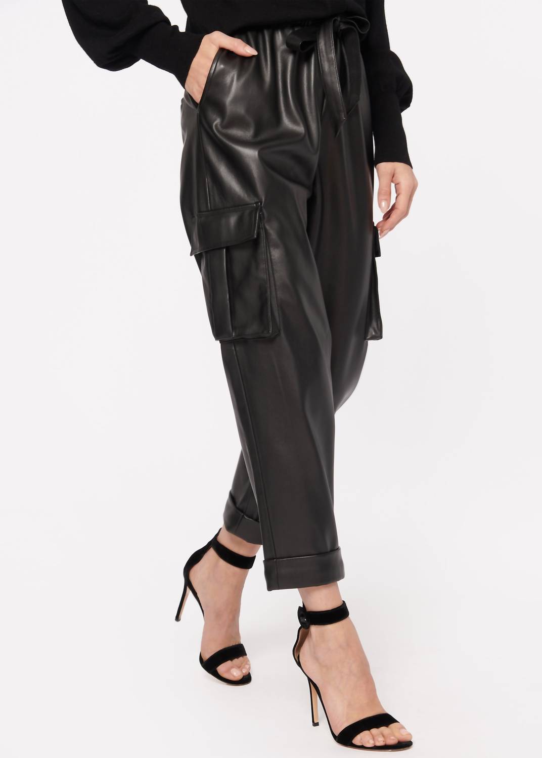 Эти брюки Addy Vegan Leather изготовлены из 55% полиуретана и 45% полиэстера, имеют высокую талию, свободный крой, манжеты на подгибе и зауженные штанины. С практичными и задними карманами, а также шнурком из веганской кожи, они сочетают стиль и практичность. Только сухая чистка и отпаривание.