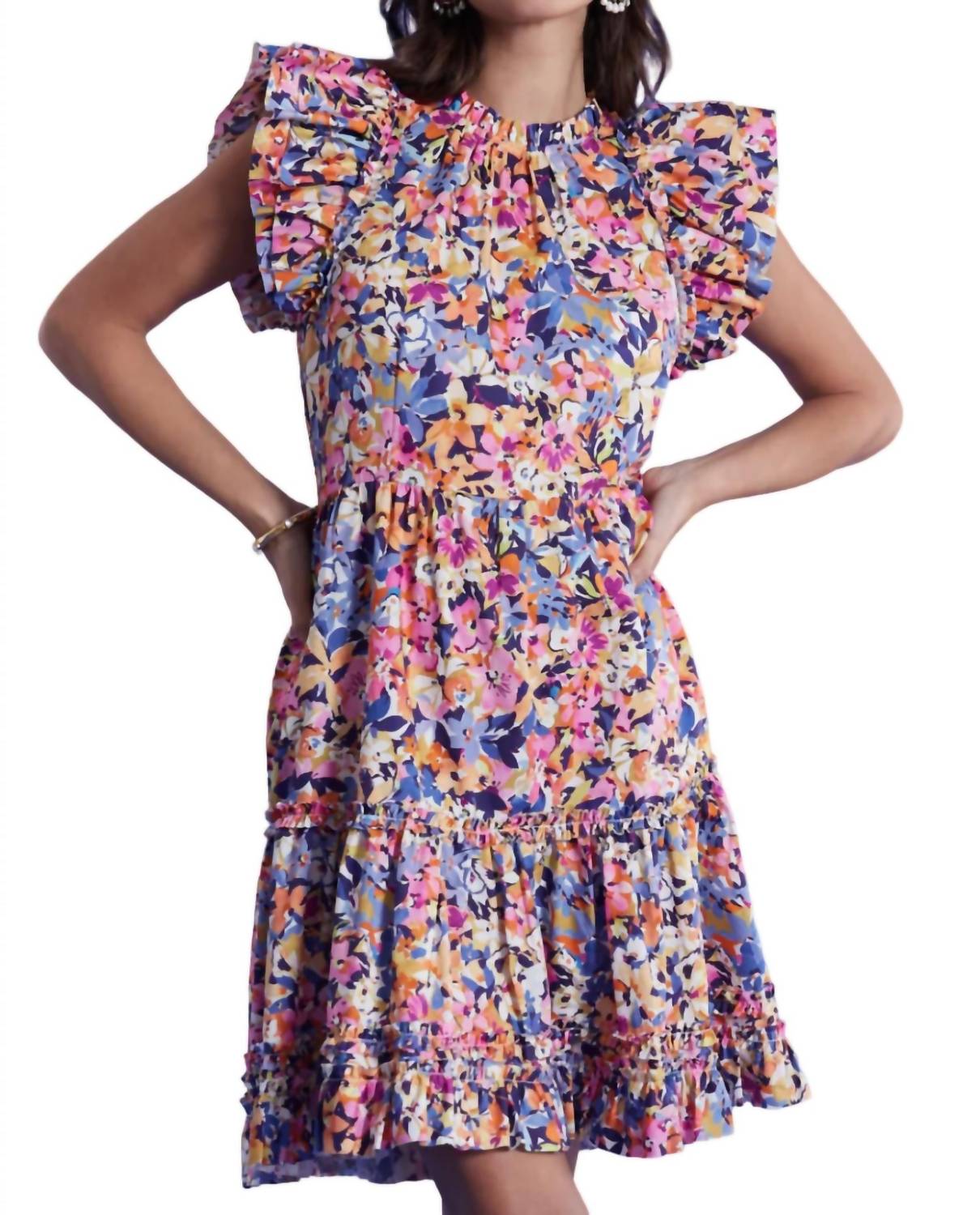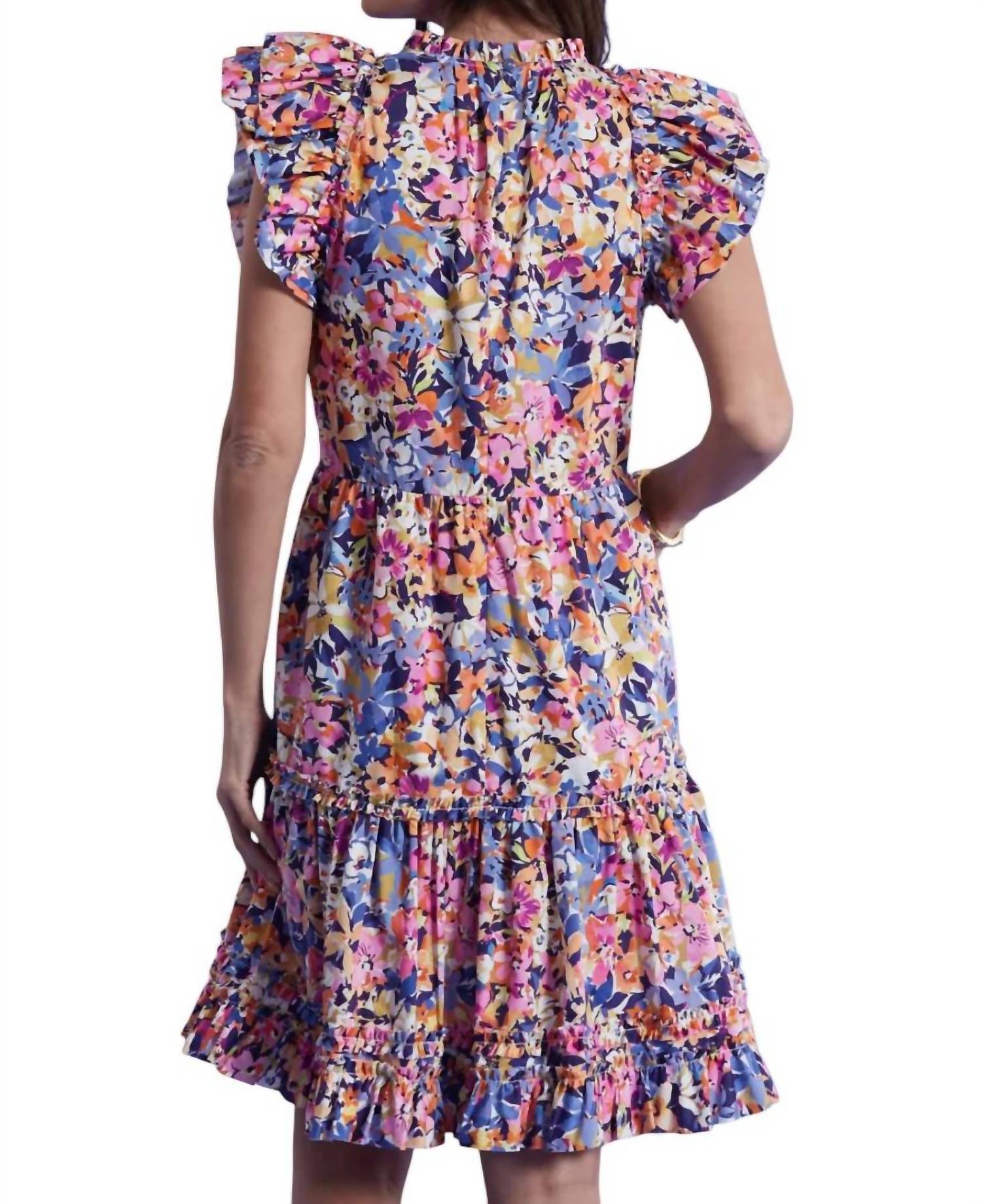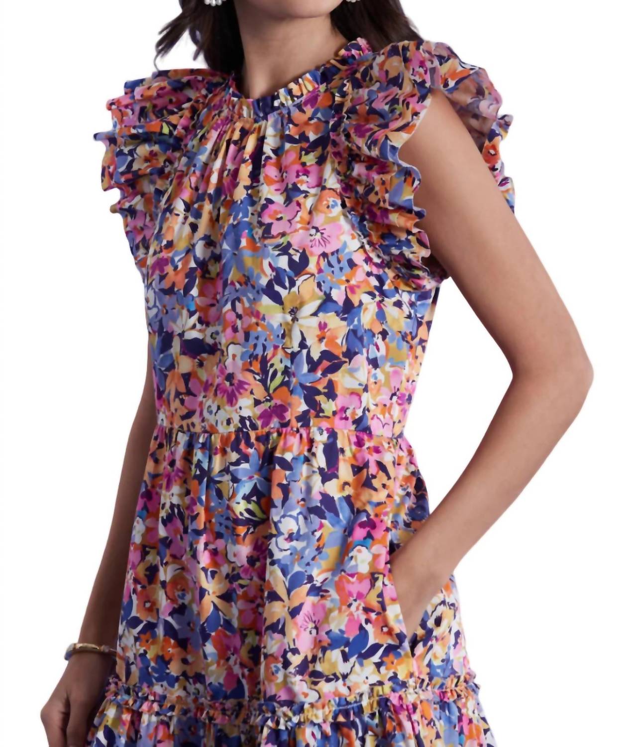 Это платье имеет оборчатый вырез и рукава, свободный А-силуэт и многоярусную юбку. Изготовлено из 100% хлопка, его можно стирать в машине для легкого ухода.
