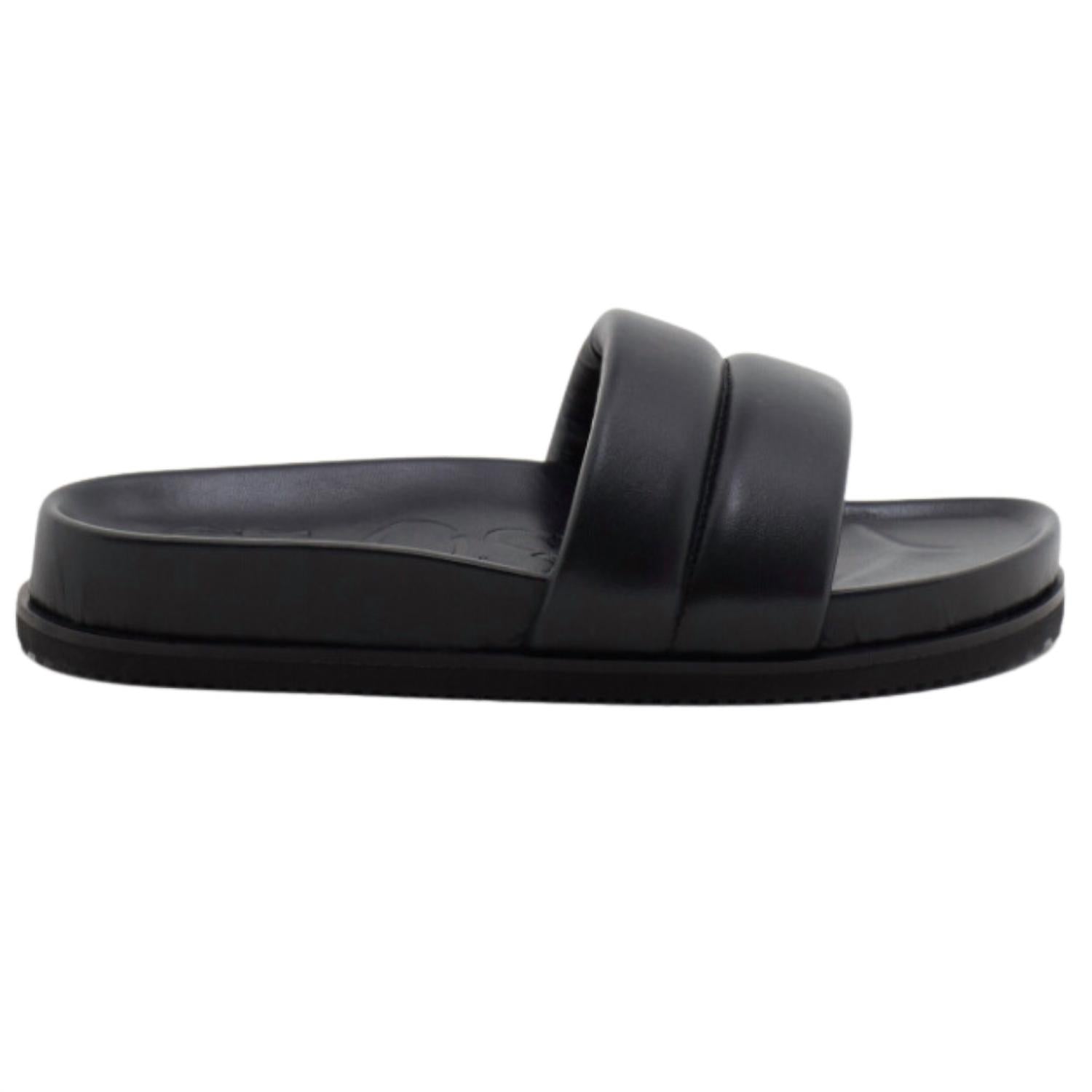 Летящие платья, укороченные брюки и даже комбинезоны... эти сандалии подойдут ко всему! Закрытые кожаные тапочки Мягкая итальянская кожа черного цвета Сандалии без застежек Удобная стелька Резиновая подошва с выразительным профилем Мягкая кожаная стелька и подкладка Точно по размеру Сделано в Италии