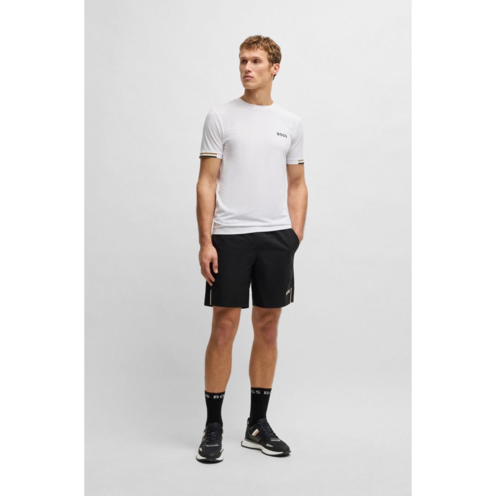 Кроссовки в спортивном стиле с фирменными полосками от BOSS, выполненные из смеси фактур, включая сетку и ткань с синтетическим покрытием.