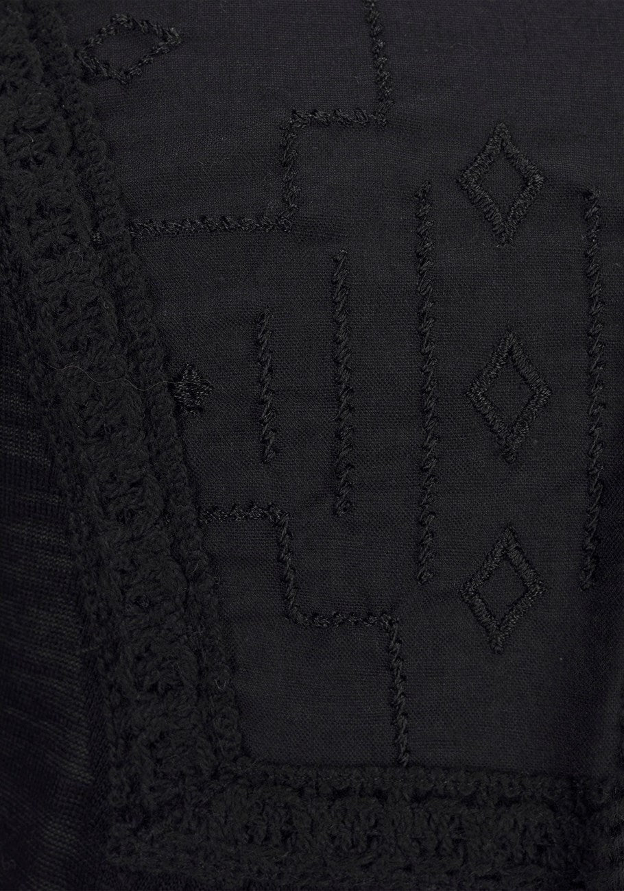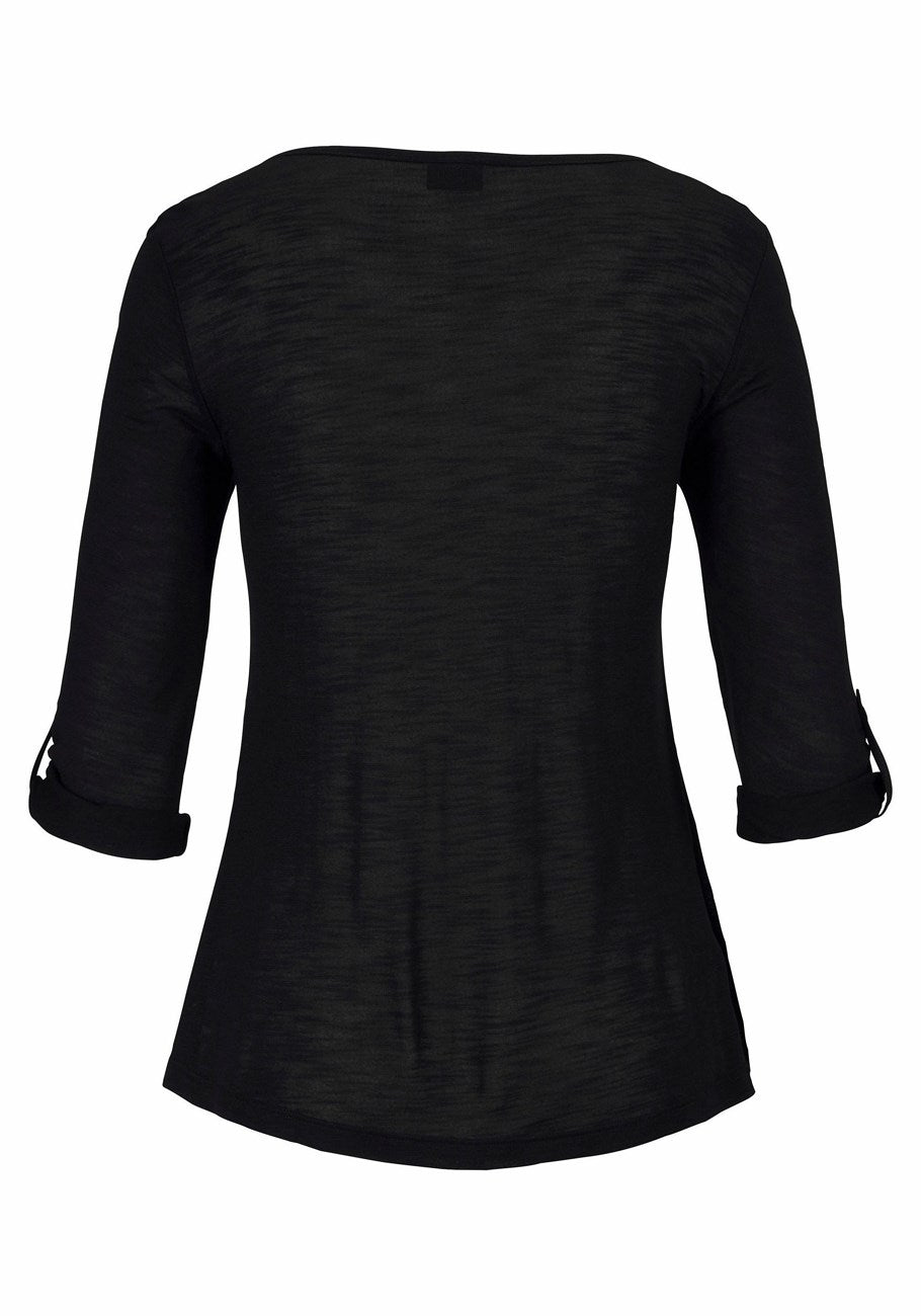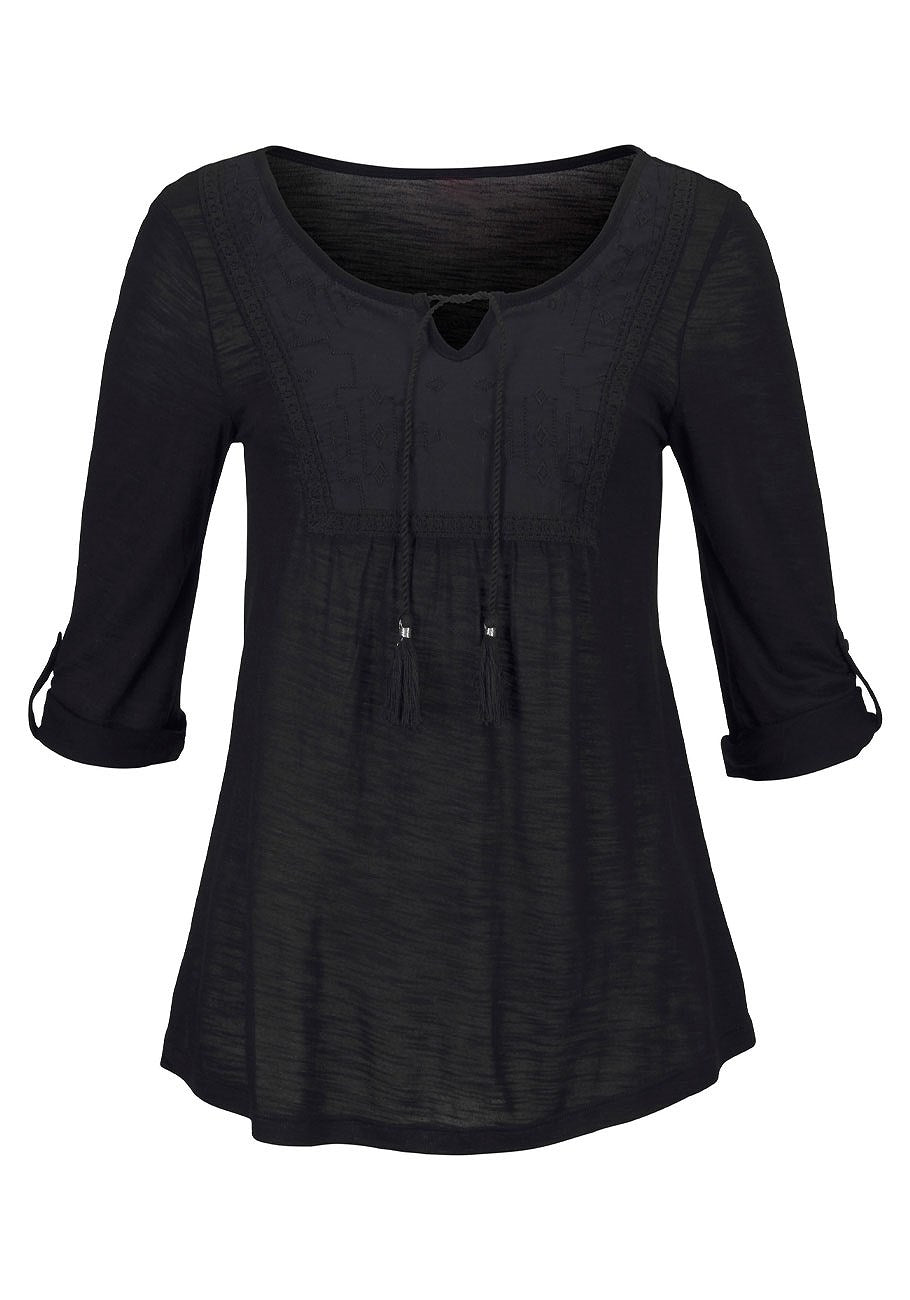 LASCANA Женский вышитый топ с рукавом 3/4, черный