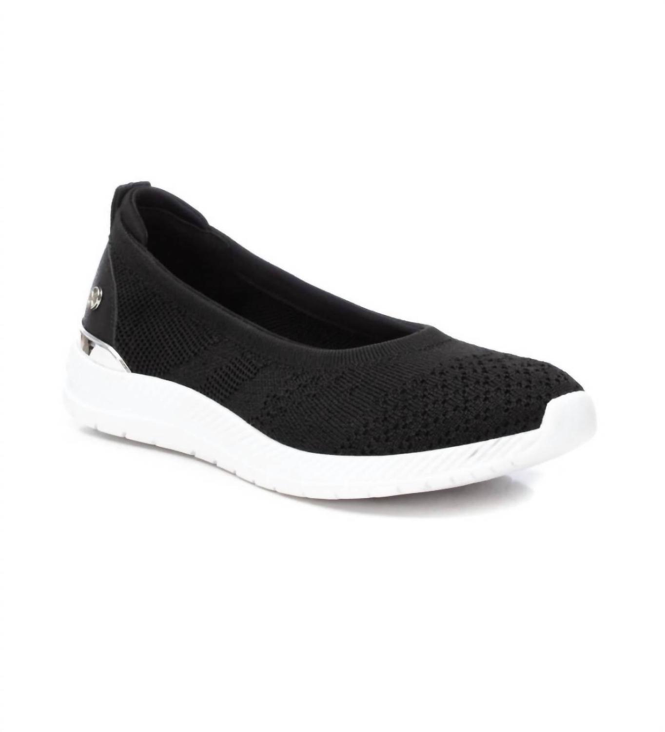 Эти балетки — идеальное сочетание повседневности и комфорта. Изготовлены из ткани с металлическими деталями. Задняя деталь из материала, имитирующего кожу с легким блеском. Нескользящая резиновая подошва.