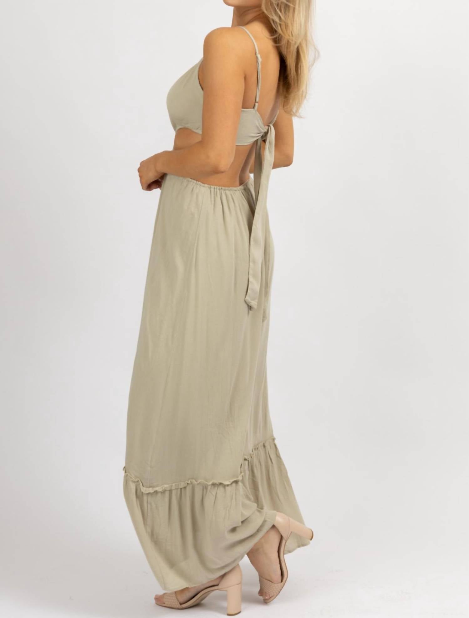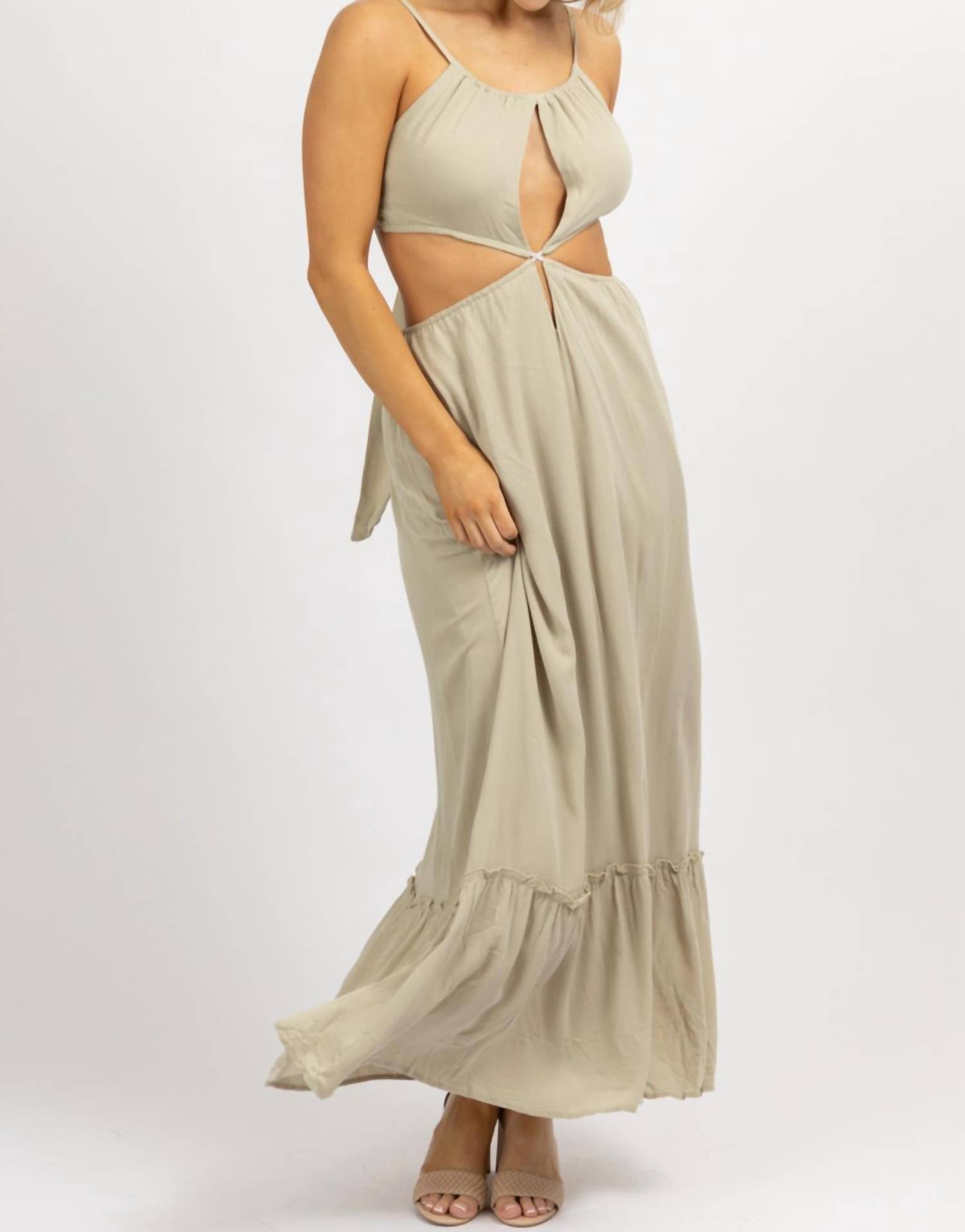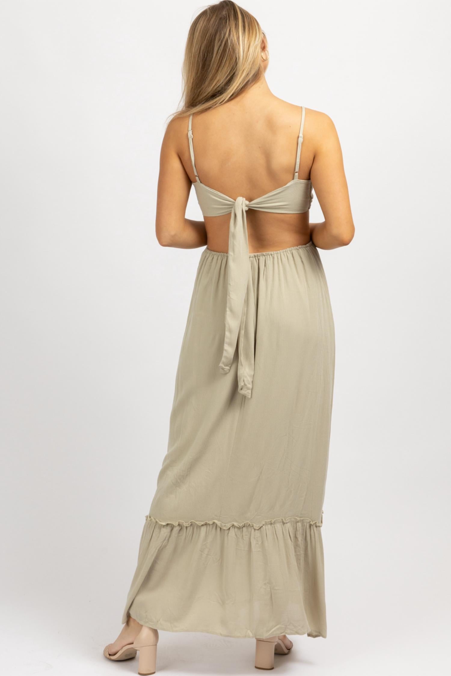 Вырез сбоку, открытая спина, завязка сзади, открытый перед, регулируемые бретели. 100% вискоза. На модели размер small. Рост 5'8, размер платья 2.