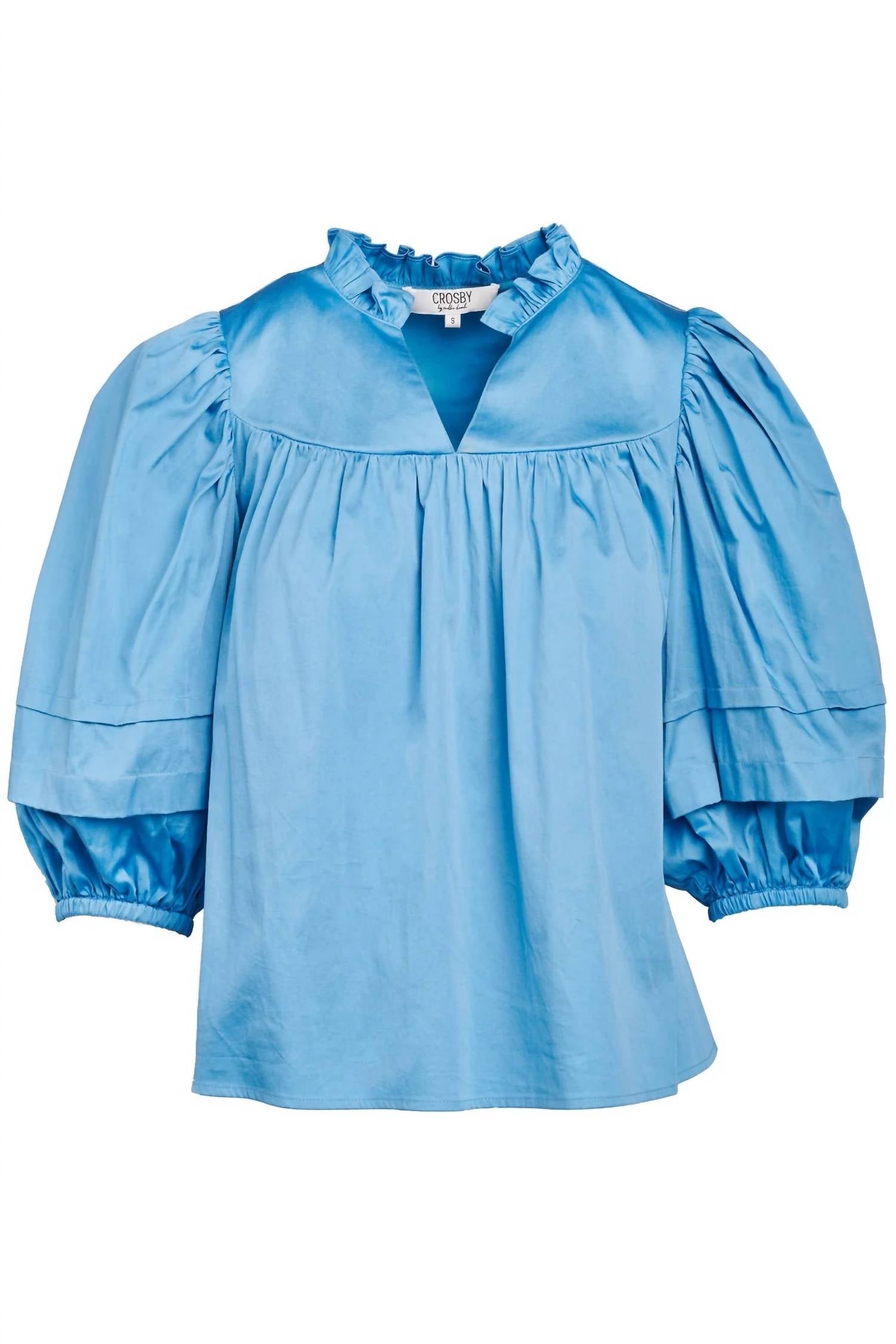 Эластичный хлопковый сатин. Имеет привлекательный V-образный вырез и удобные струящиеся рукава. Струящееся, свободное тело. Длина (взято с размера small) - 24". Эрин ростом 5 футов 8,5 дюймов, на ней размер small.