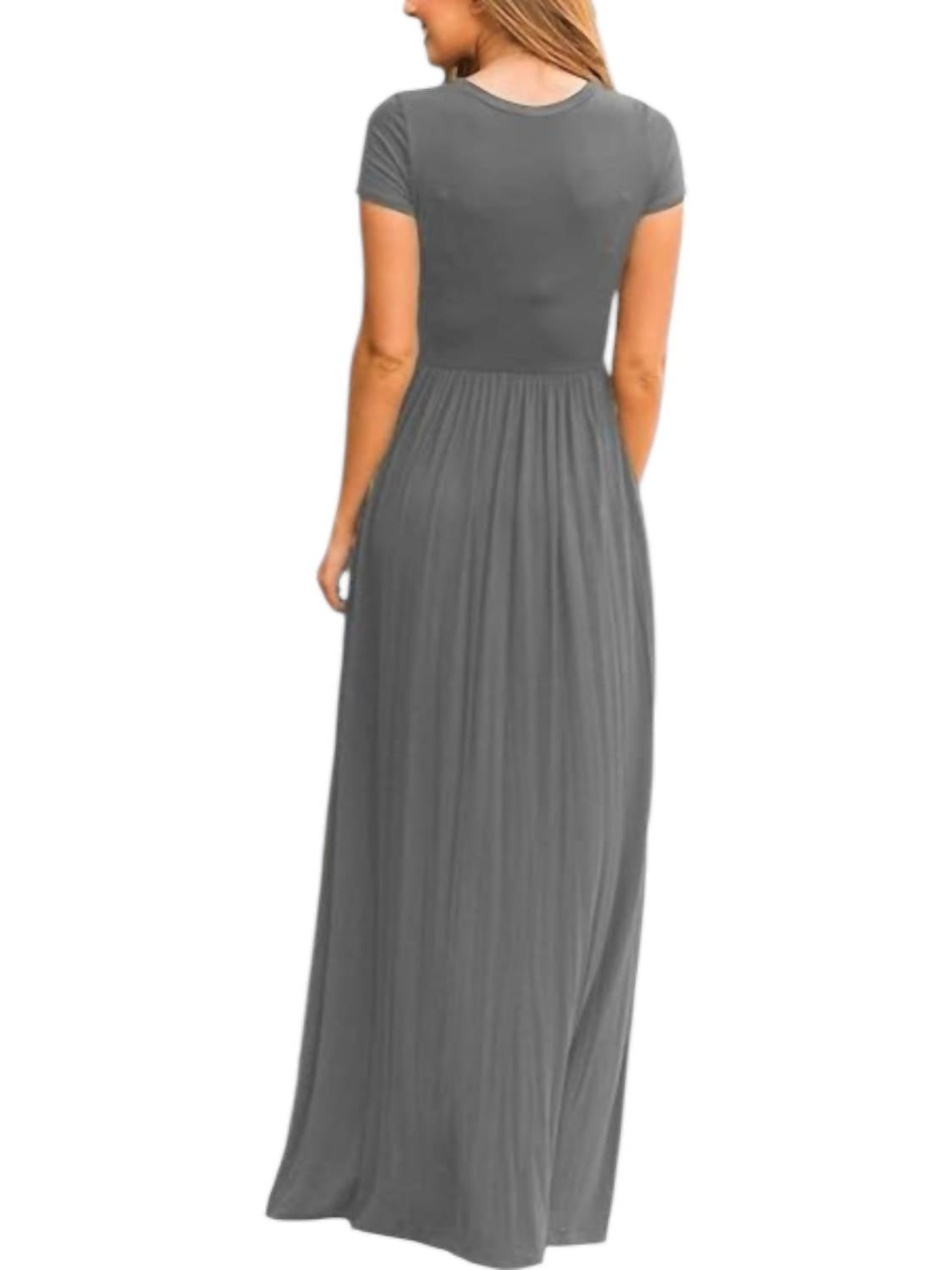 Очень мягкая, эластичная и легкая ткань. Круглый вырез горловины с короткими рукавами. Два боковых кармана. Эластичный пояс для удобной посадки. Макси-стиль длиной до пола с повседневным базовым видом. Изготовлено из 95% вискозы и 5% спандекса.