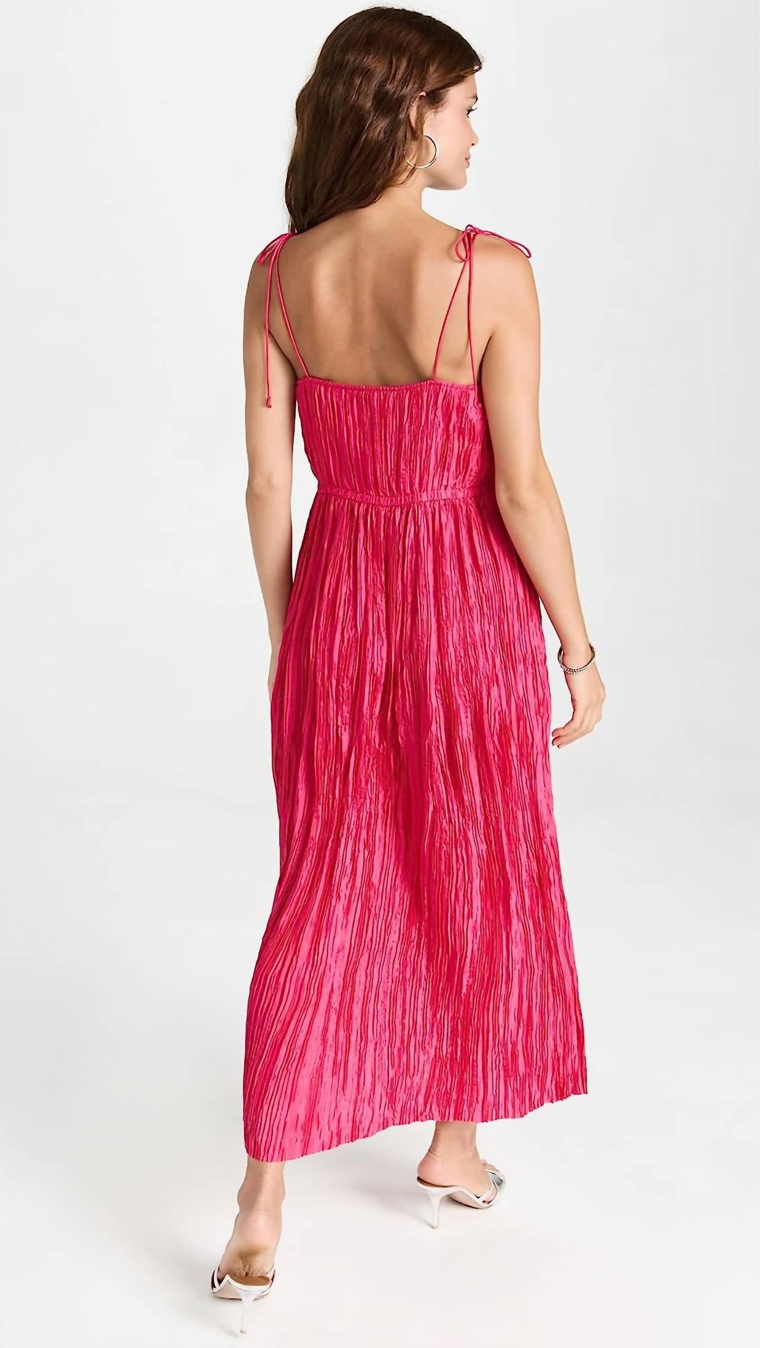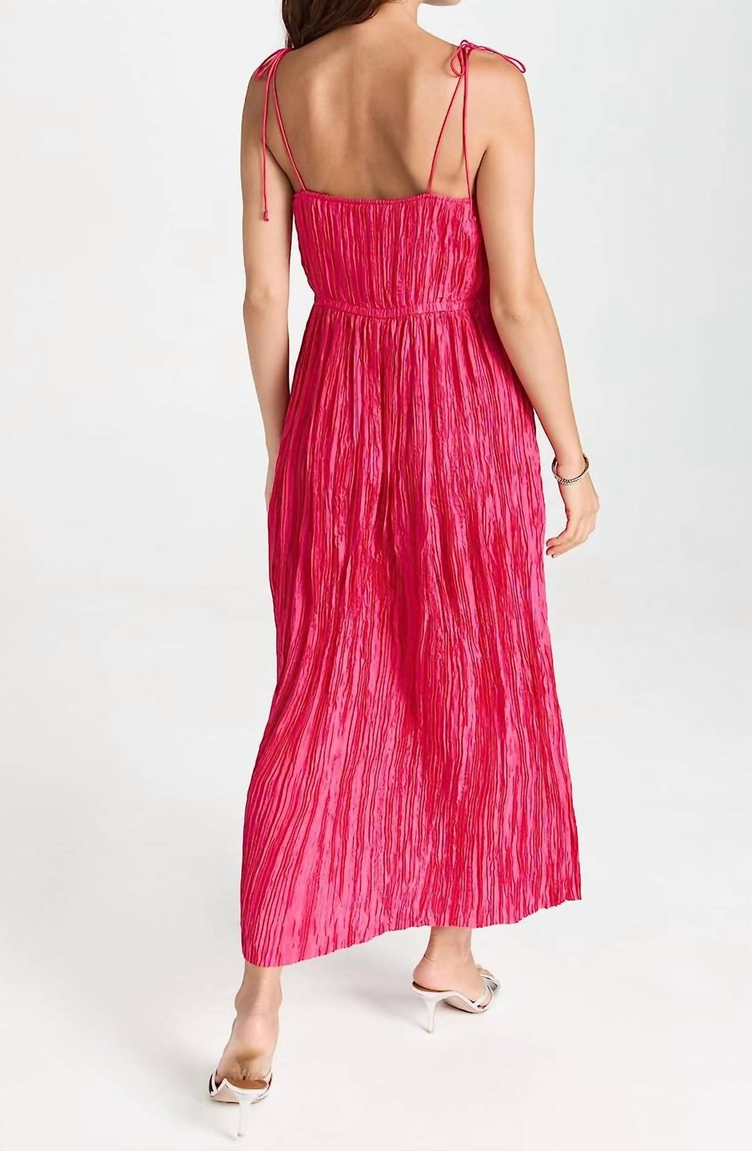 Ткань - Легкий, неэластичный плиссированный атлас. Завязывающиеся бретели. Застежка на крючок и потайная молния сбоку. На подкладке. 100% полиэстер. Импортный. Только сухая чистка.