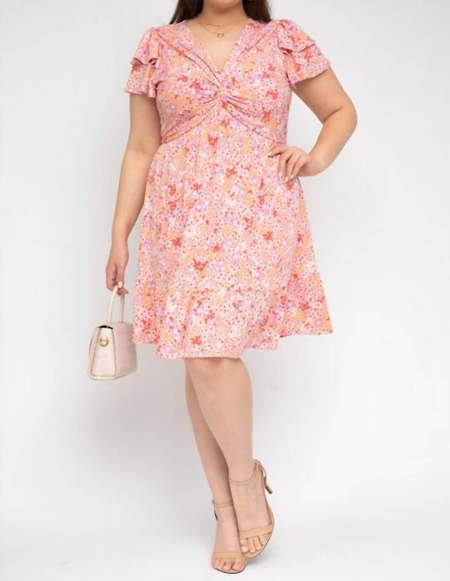 Платье в цветочек кораллового цвета GILLI