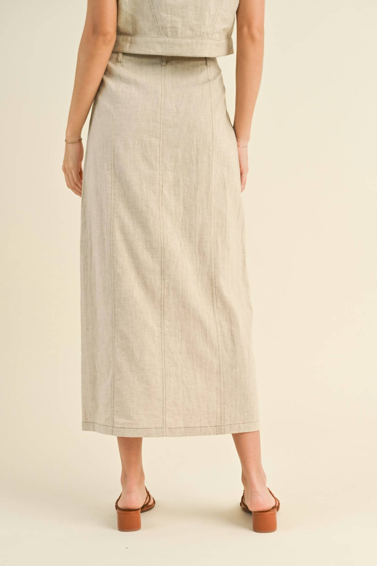 Необработанные края для создания повседневного изящества. Разрез спереди. Со шлевками. Материал: хлопок, лен.