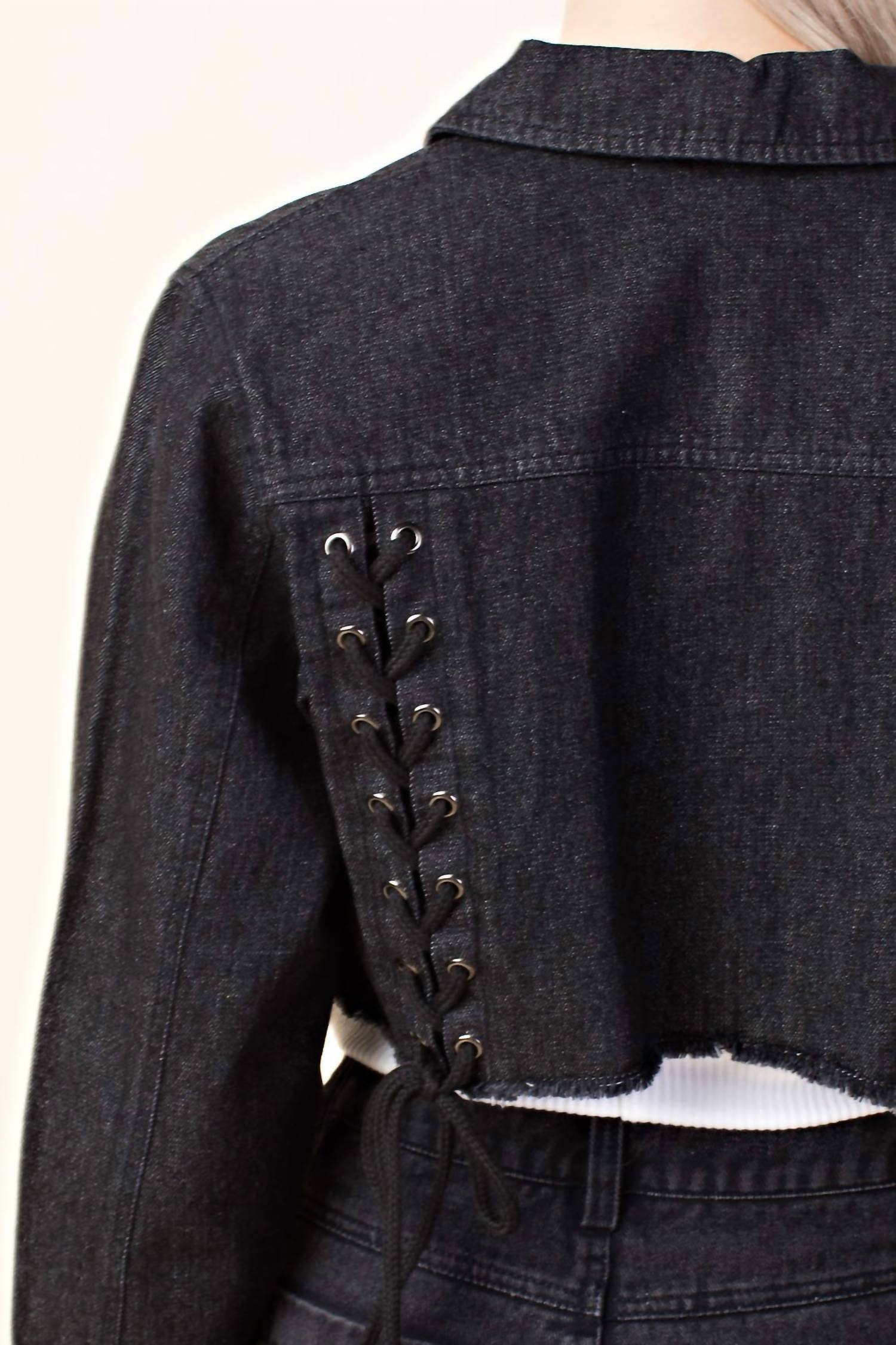 Модель имеет шнуровку на спине, классический воротник, застежку на пуговицы спереди, два кармана, длинные рукава и необработанный подол. Очень маленькая грудь 34" Длина 14", маленькая грудь 36" Длина 14.5", средняя грудь 38" Длина 14.5", большая грудь 40" Длина 15". 100% хлопок.