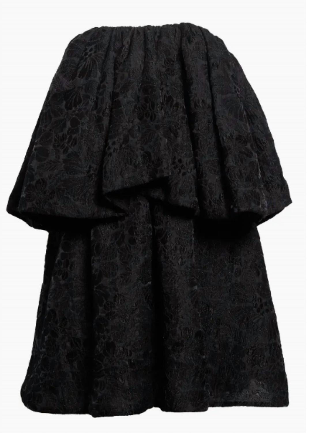 Потрясающее мини-платье без бретелек выполнено из роскошного жаккарда клоке с искусным узором в виде лунных цветов. Имеет незаметную молнию в боковом шве для бесшовной посадки. Украшено прочной внутренней верхней подкладкой для дополнительной поддержки. Спроектировано с А-образным силуэтом. Для ухода рекомендуется только химчистка.