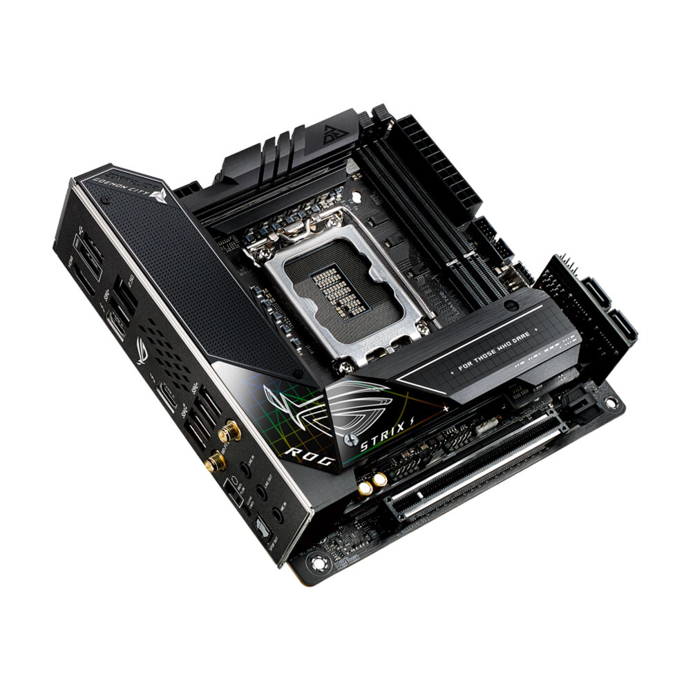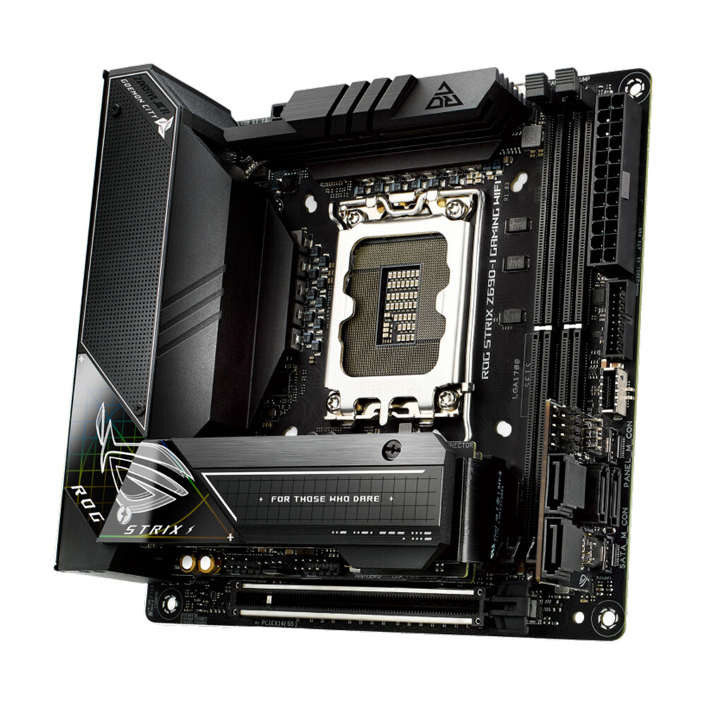 Материнская плата с чипсетом Intel Z690: процессорный разъем LGA 1700, форм-фактор mini-ITX, PCIe 5.0, 10+1 силовой модуль, системы интеллектуального шумоподавления, разгона, охлаждения и сетевого подключения, Wi-Fi 6E, 2.5G Ethernet (контроллер Intel), два слота M.2 с радиаторами и усилительными пластинами, два порта Thunderbolt 4 (USB-C), SATA, синхронизируемая подсветка Aura.