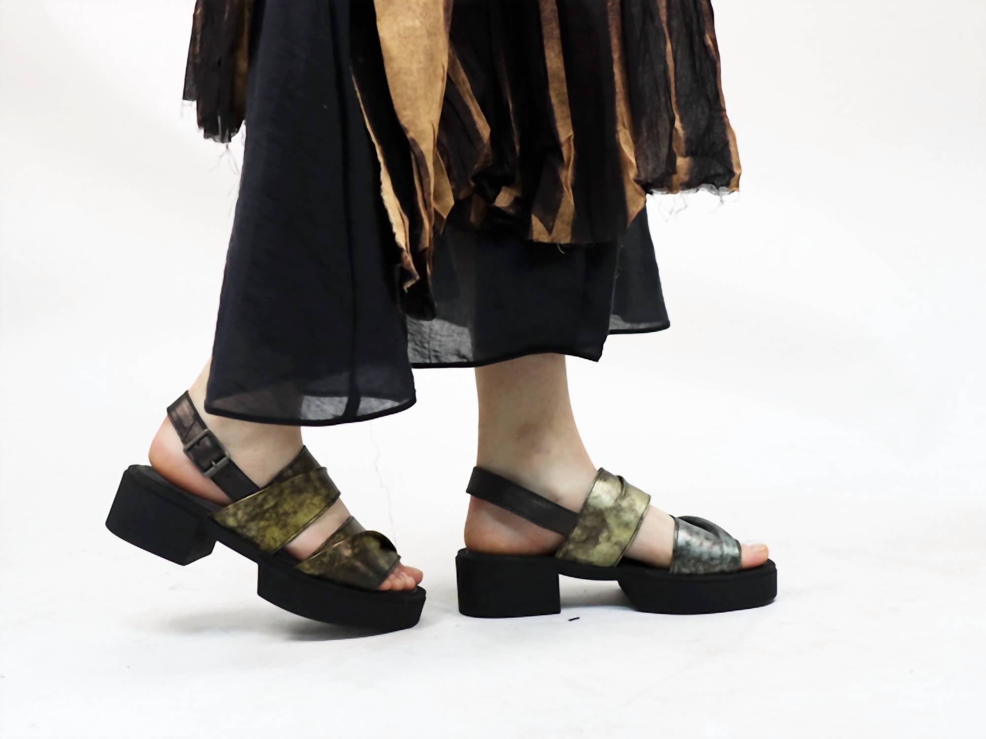 Летящие платья, укороченные брюки и даже комбинезоны... эти сандалии подойдут ко всему! Босоножки на платформе с открытой пяткой из пестрой металлизированной кожи