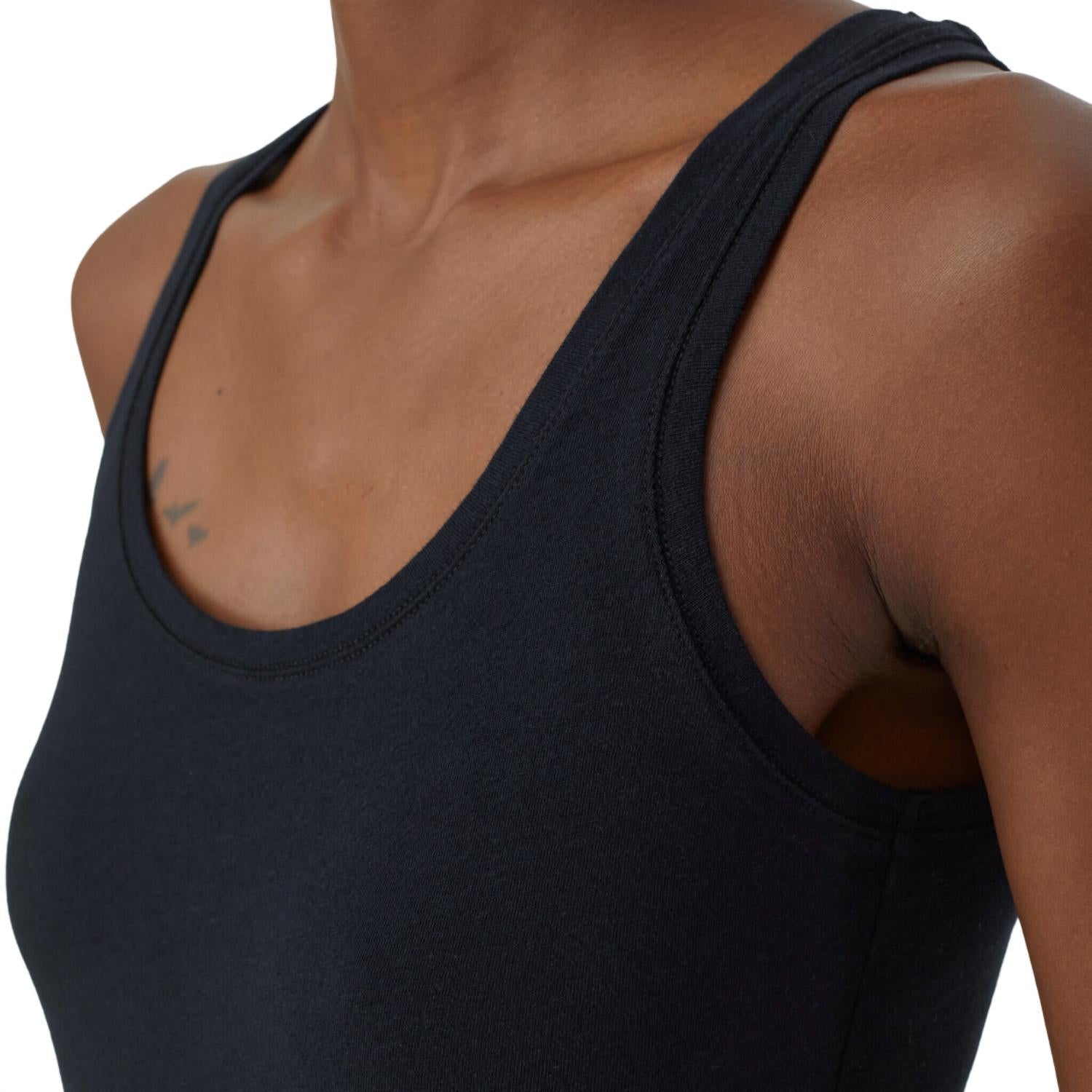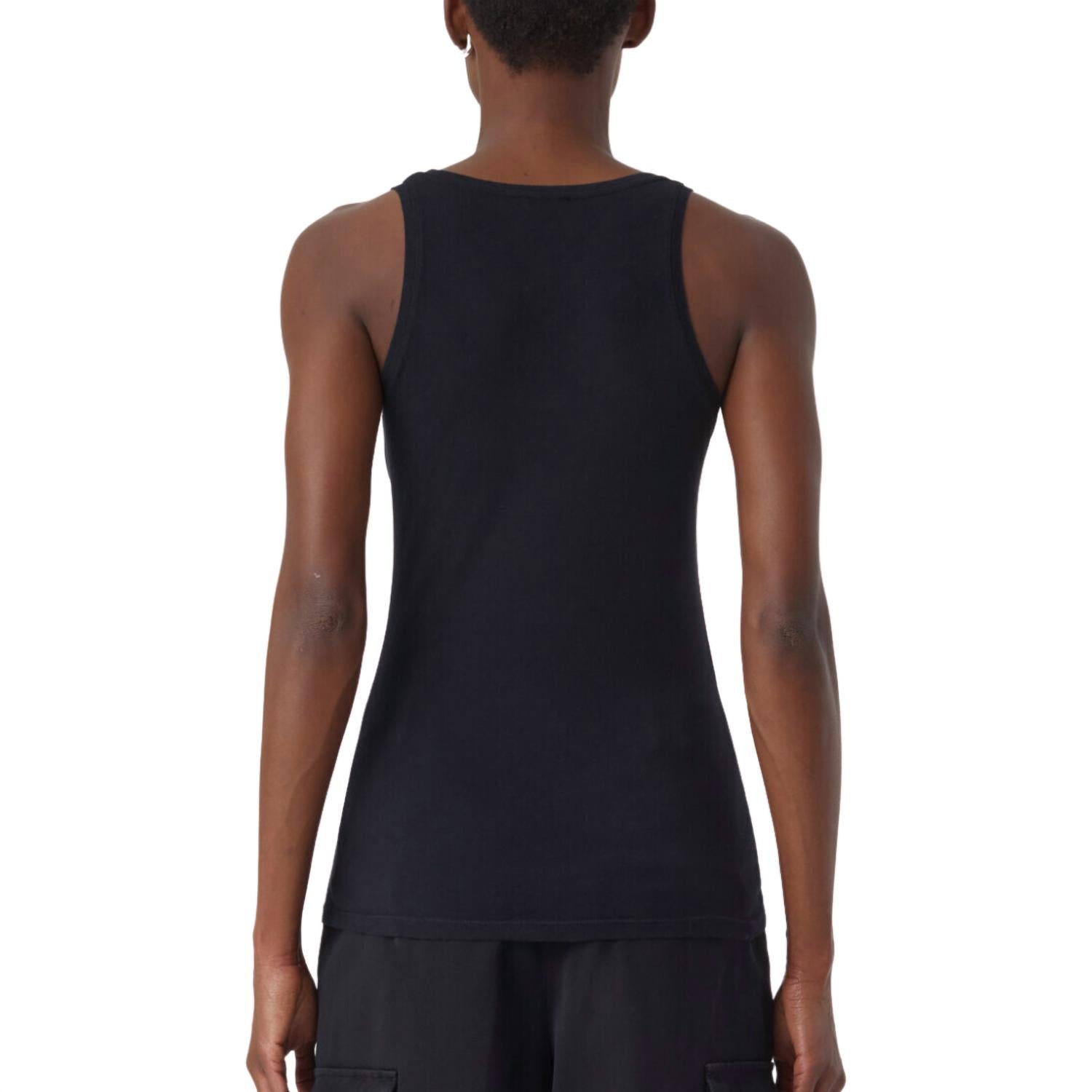 Посадка, ткань и функциональность. Эта майка отвечает всем требованиям. Закрытая майка из чистого хлопкаХлопок черного цветаМайка облегающего крояШирокий круглый вырезПрямой подолРазмер S Длина 24,2 дюймаСделано в ПортугалииМашинная стирка
