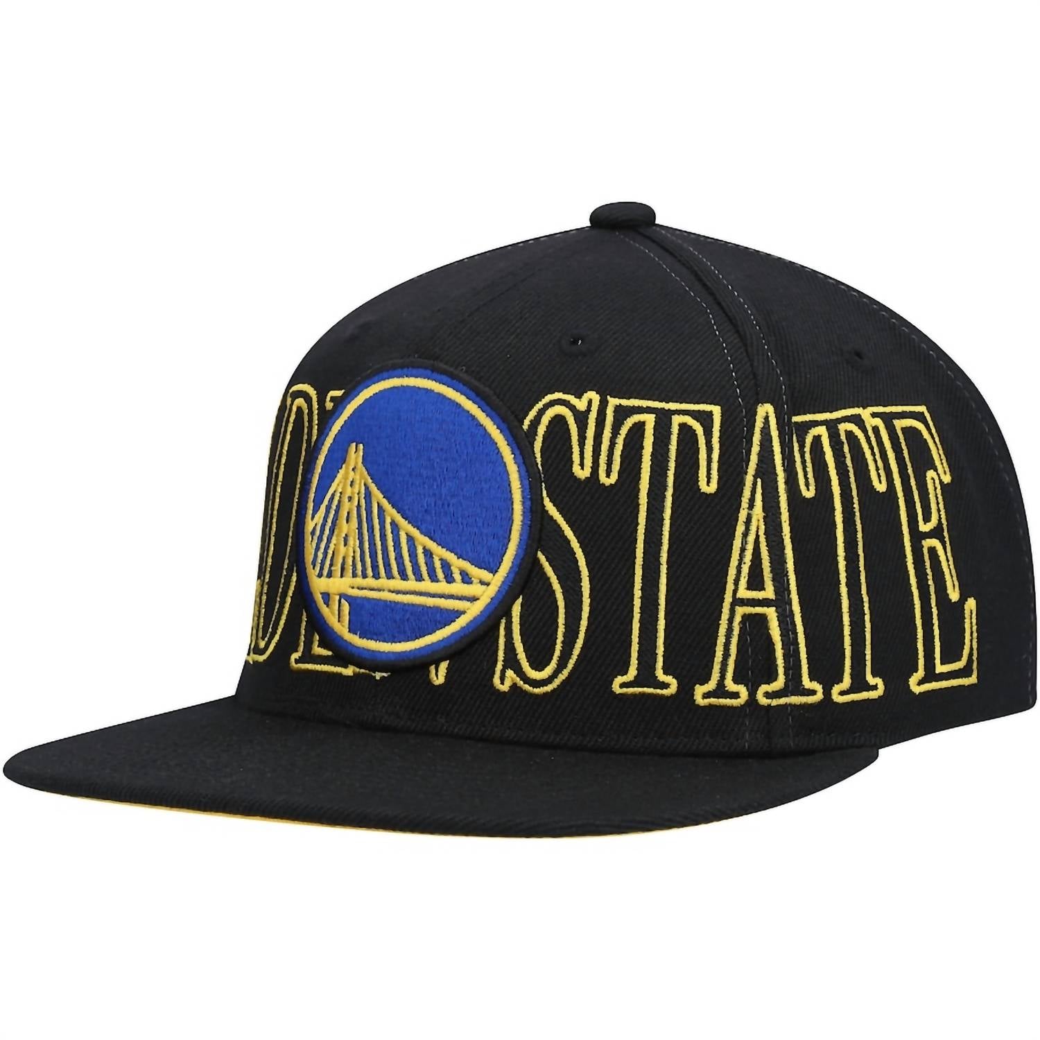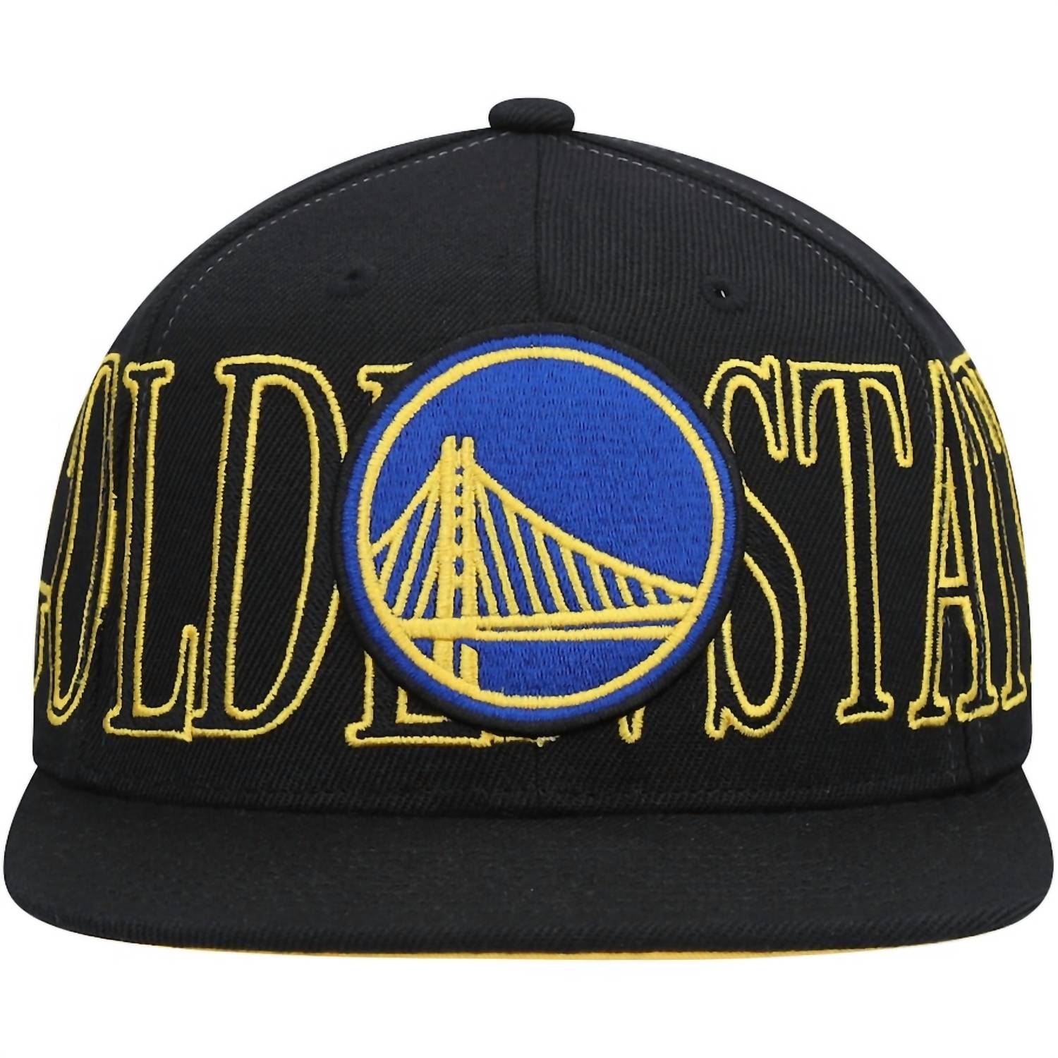 Эта структурированная шляпа высокого профиля изготовлена из 100% полиэстера и имеет вышитый аппликационный логотип с большим текстом Golden State, обернутым вокруг передней части. Она имеет плоский козырек с контрастным золотисто-желтым подклювьем, шесть панелей с люверсами и внутреннюю фирменную тесьму. Шляпа также включает вышитый логотип бренда сзади и регулируемую застежку-кнопку.