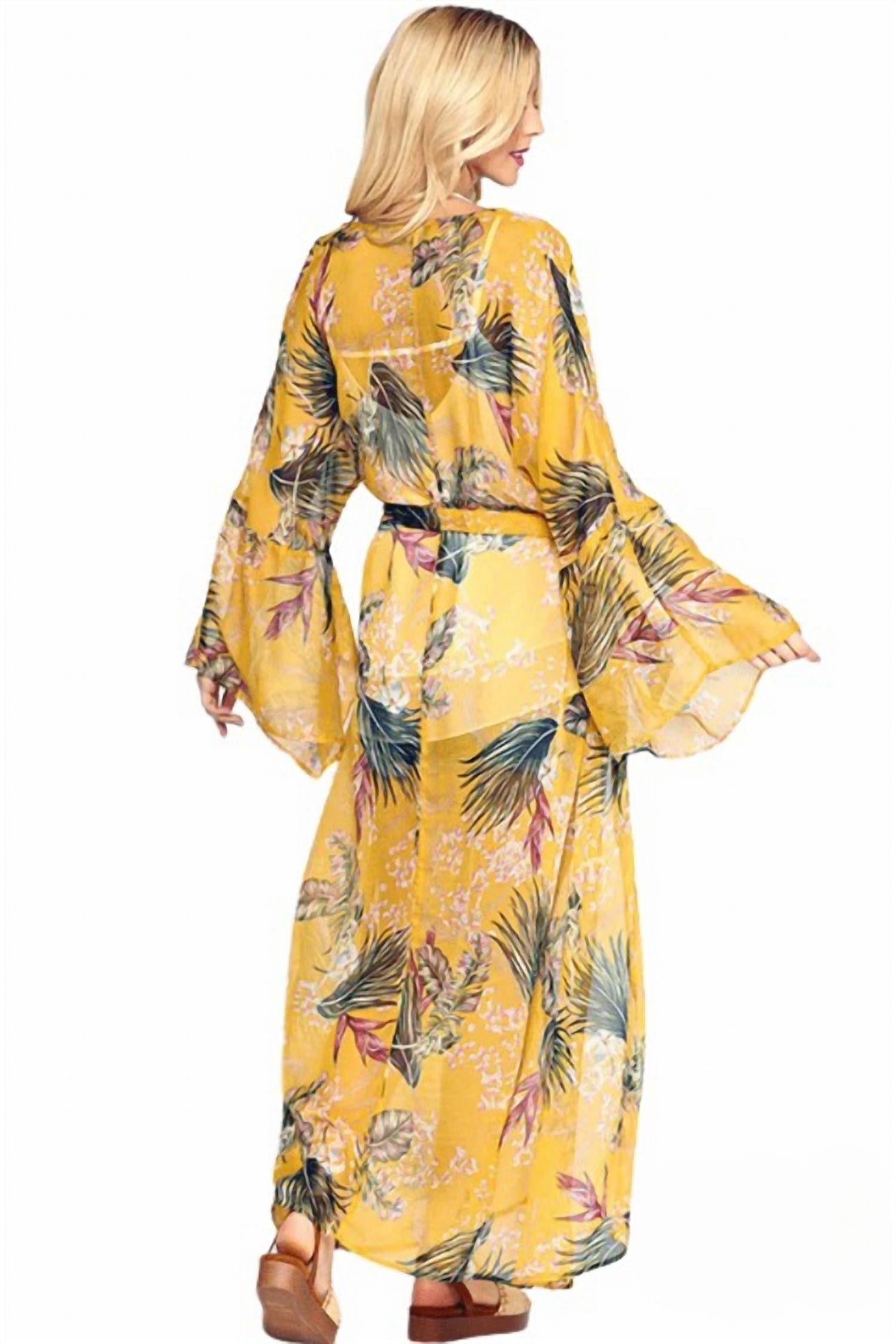 Поднимите свой гардероб для отдыха с помощью макси-кимоно Miranda Tropical Print Chiffon Maxi Kimono от GiGiO, доступного в ярком желтом многоцветном узоре. Эта потрясающая вещь имеет струящиеся длинные рукава и завязку, которая стягивает талию, создавая непринужденный элегантный силуэт. Изготовленное из 100% полиэстера, это кимоно без подкладки может похвастаться легким шифоновым материалом, который идеально подходит для любого отпуска.