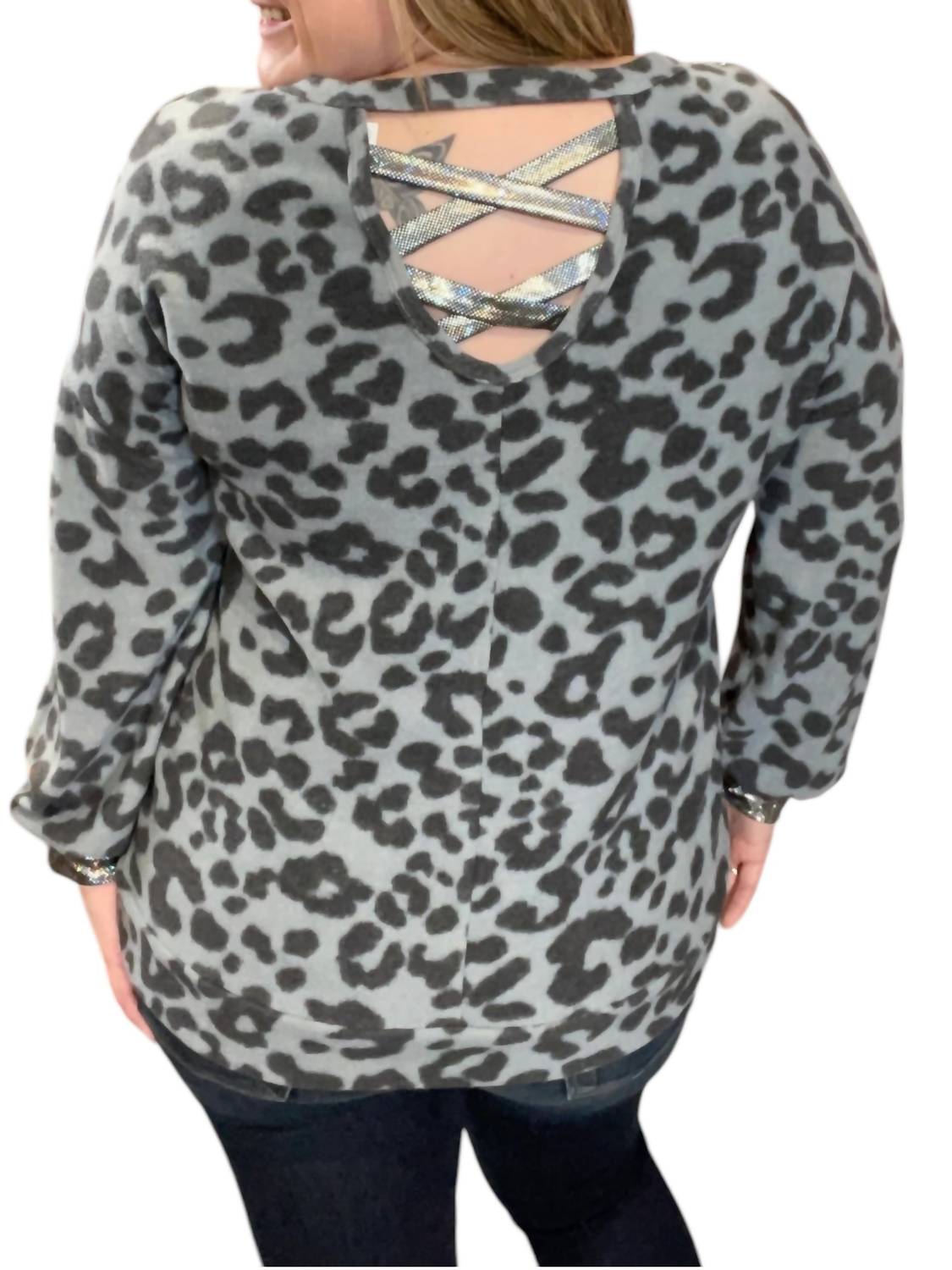 Круглый вырез. Длинные рукава. Модель в стиле пуловера. Анималистичный принт по всей поверхности. 78% полиэстер, 18% вискоза, 4% спандекс.