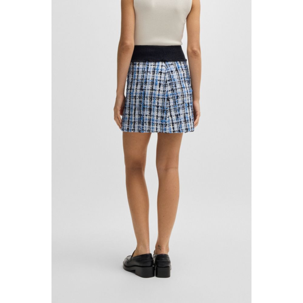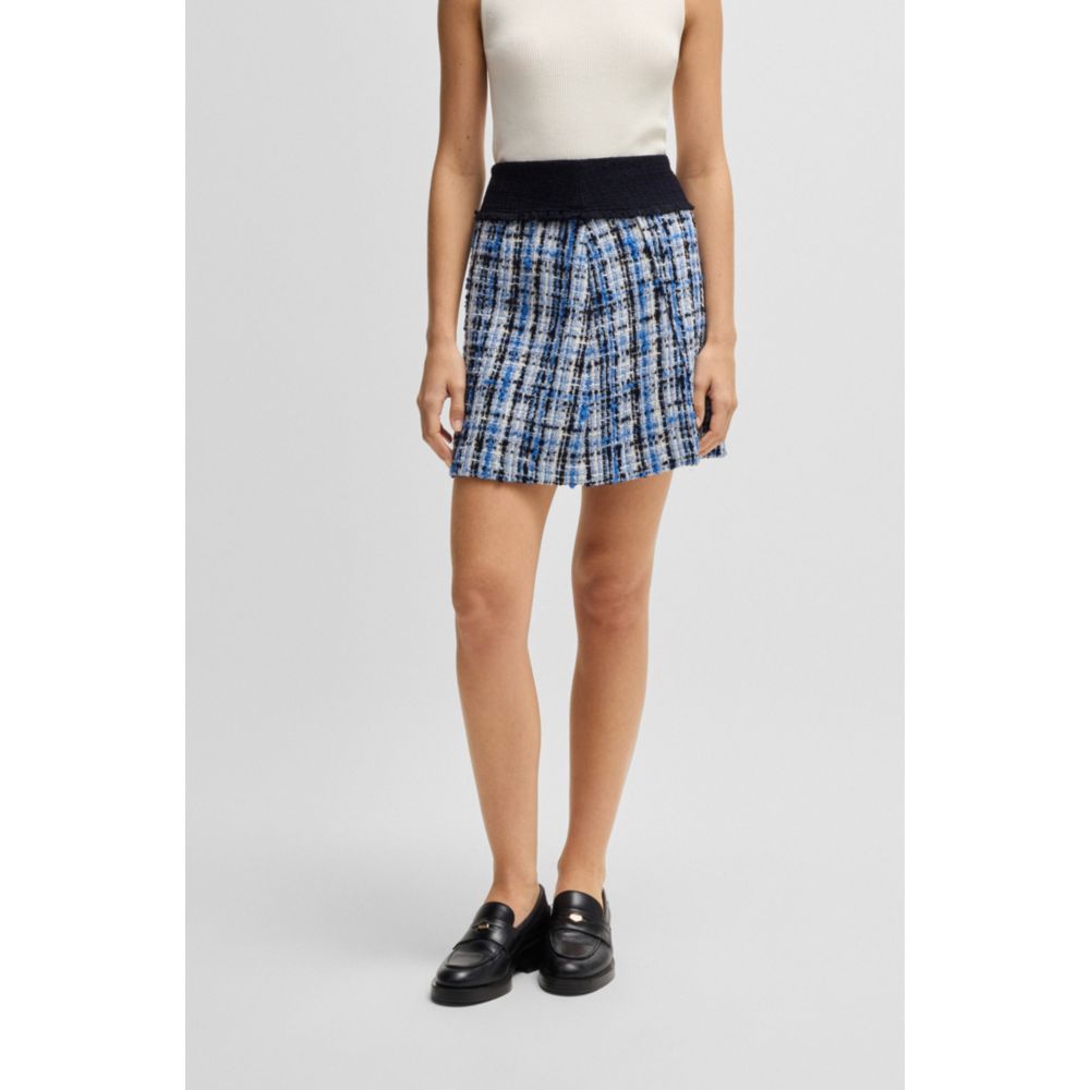 Мини-юбка с контрастным поясом из разноцветного твида с хлопком и шерстью от BOSS Womenswear. Сочетайте с подходящим укороченным жакетом.