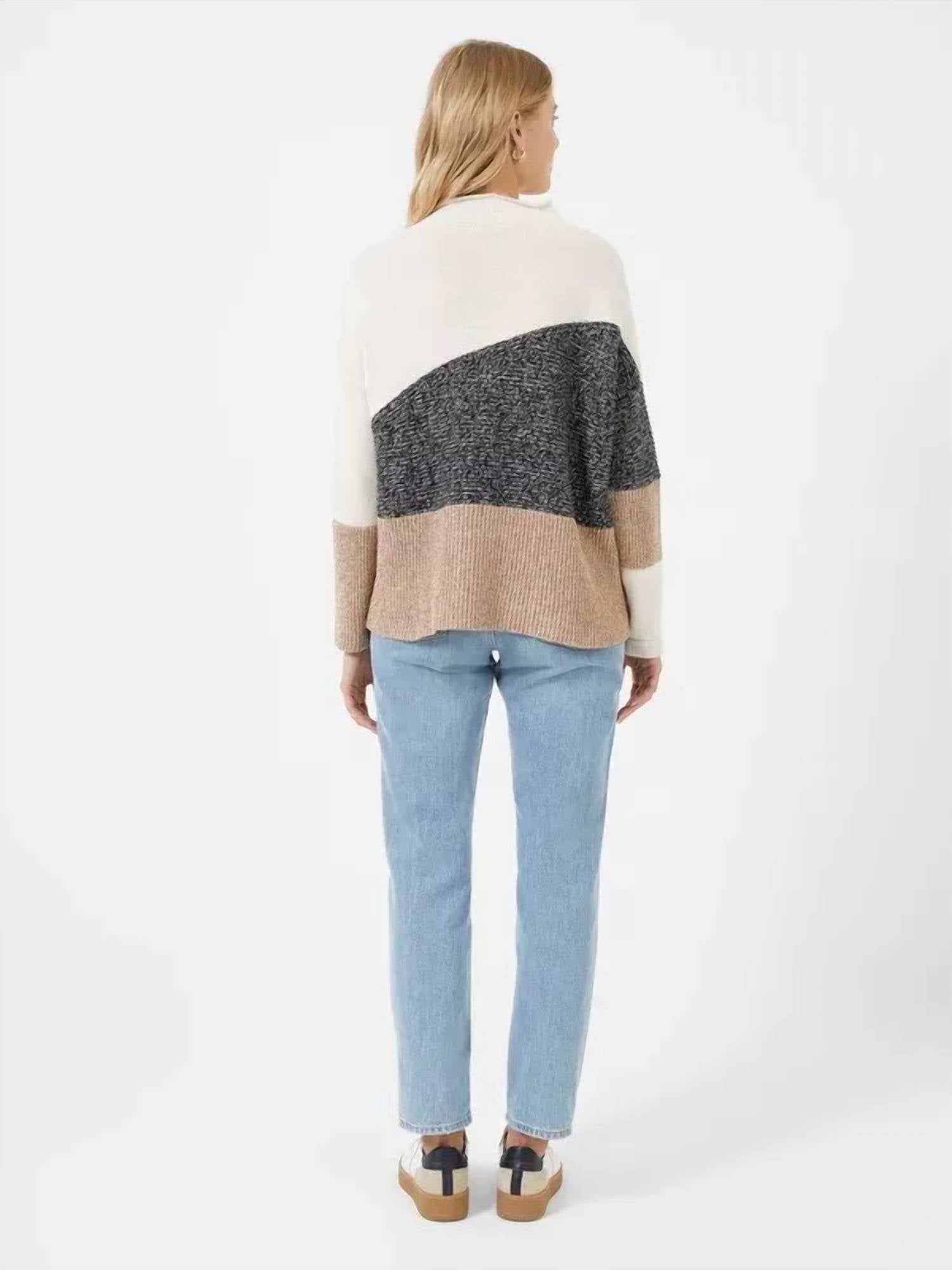Ложный воротник. Длинные рукава. Мягкий трикотажный материал, сочетающий акрил и хлопок.