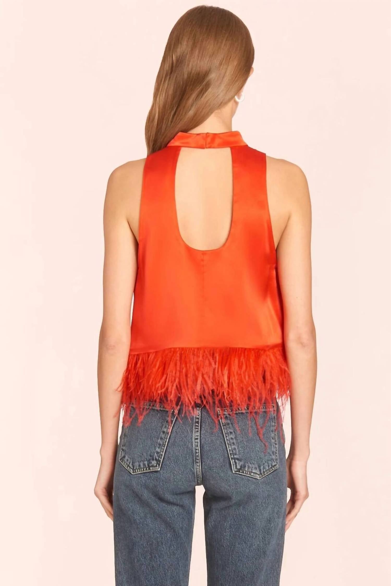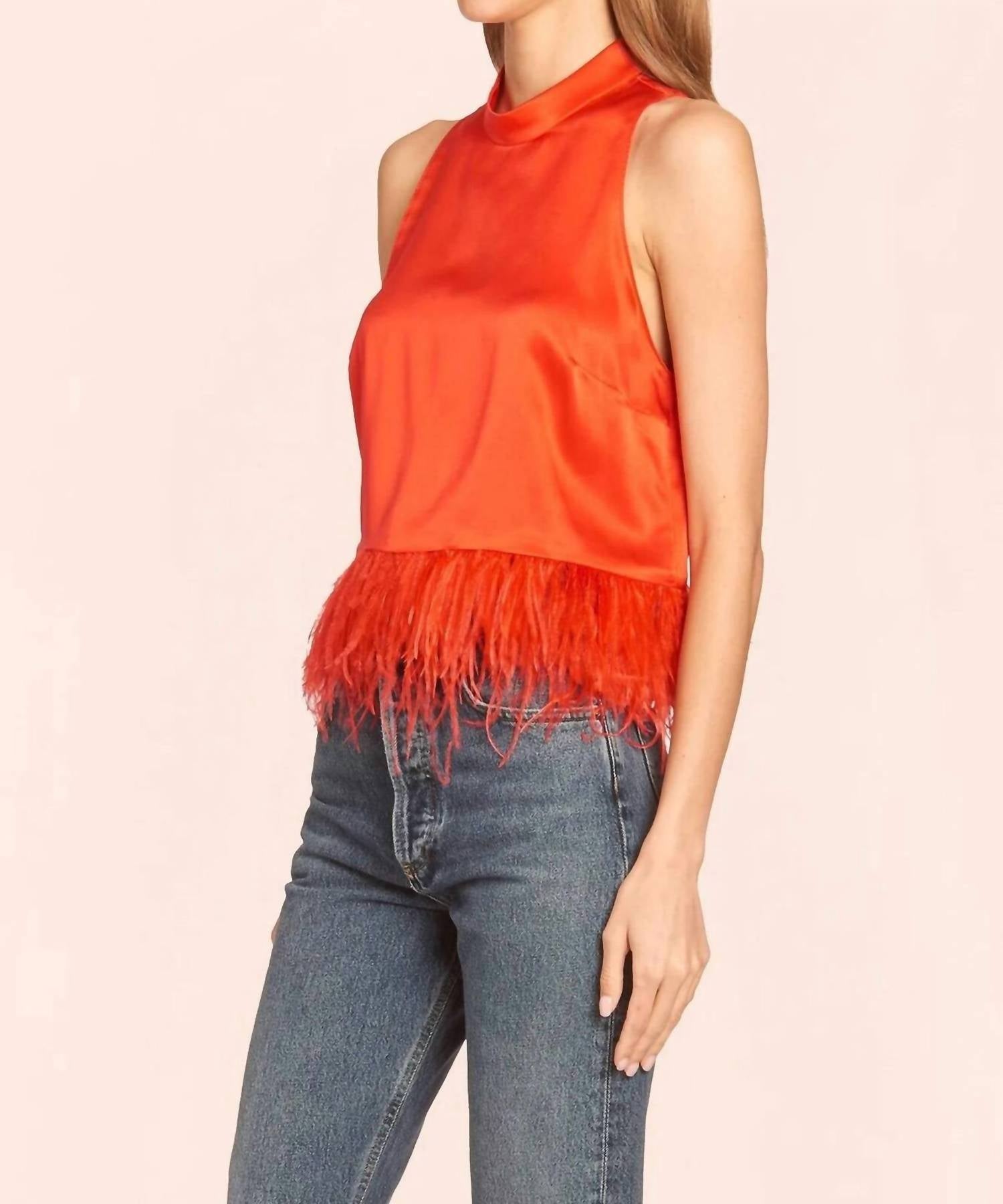 Яркий красный цвет привлекает внимание, а подол из перьев — забавная и уникальная деталь. Вырез на спине сексуальный, а застежка на крючок сзади обеспечивает идеальную посадку. Атласная ткань роскошна, а стиль с воротником-стойкой элегантен и неподвластен времени.