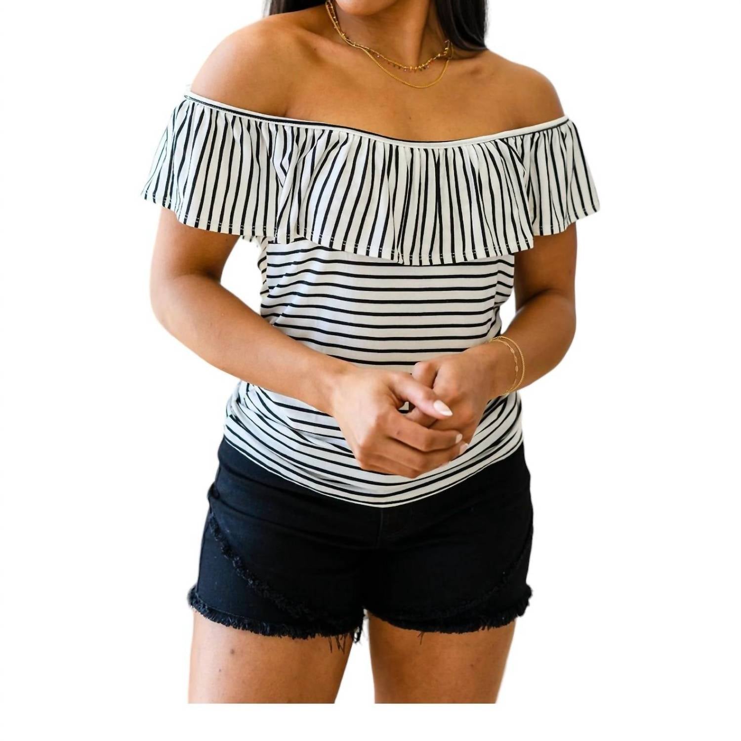 Легкая ткань с черно-белым полосатым принтом. Круглый вырез с оборкой. Рукава-крылышки. Эластичный материал. Универсальный дизайн, можно носить на плече или с открытыми плечами. Соответствует размеру. 95% вискоза, 5% спандекс.