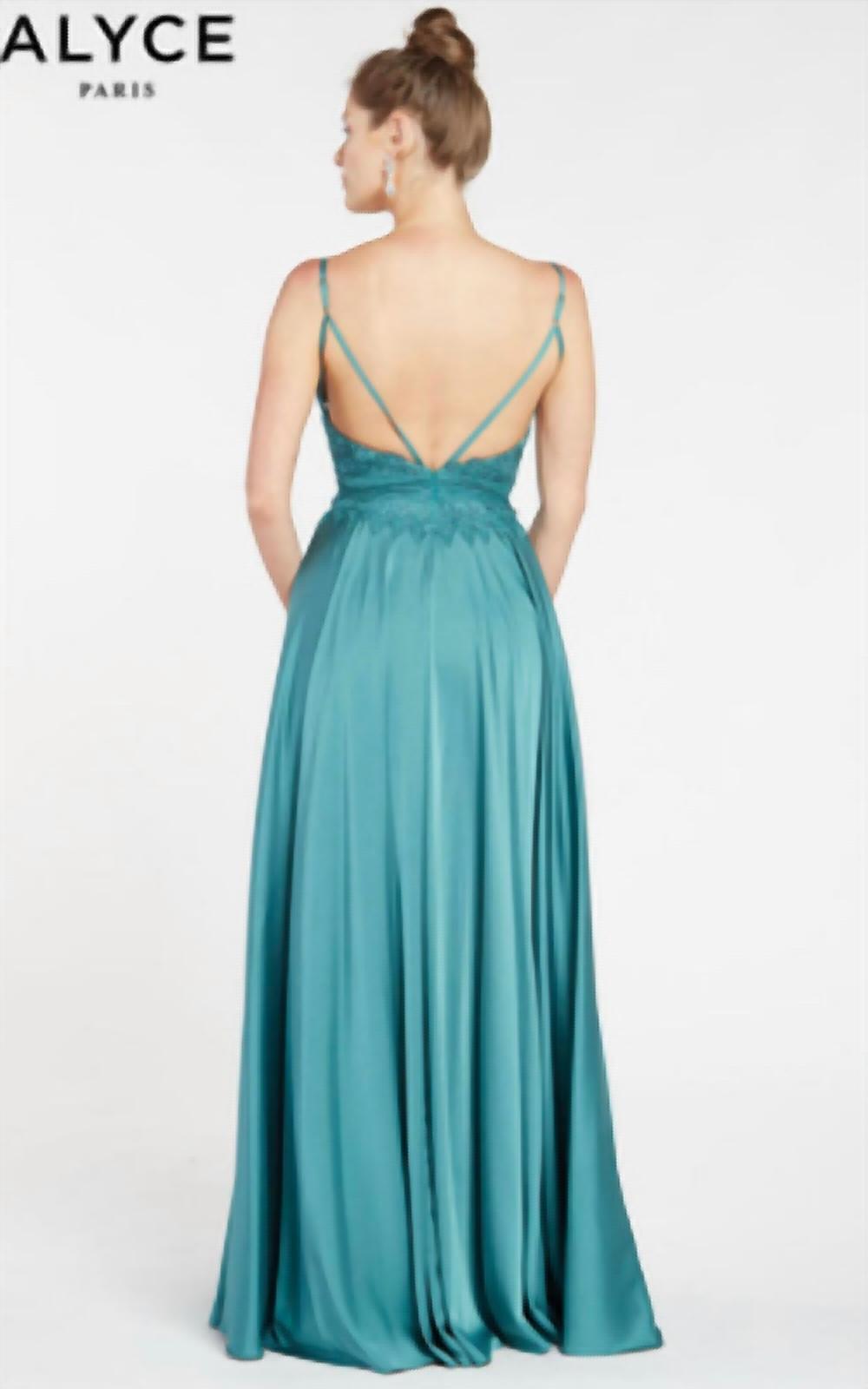 Атласное вышитое платье зеленого цвета ALYCE PARIS