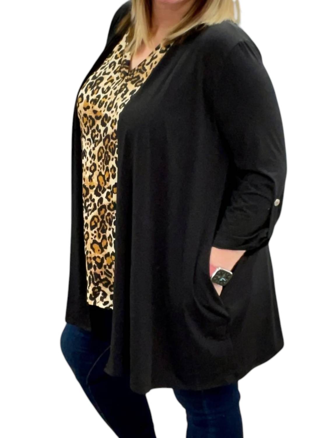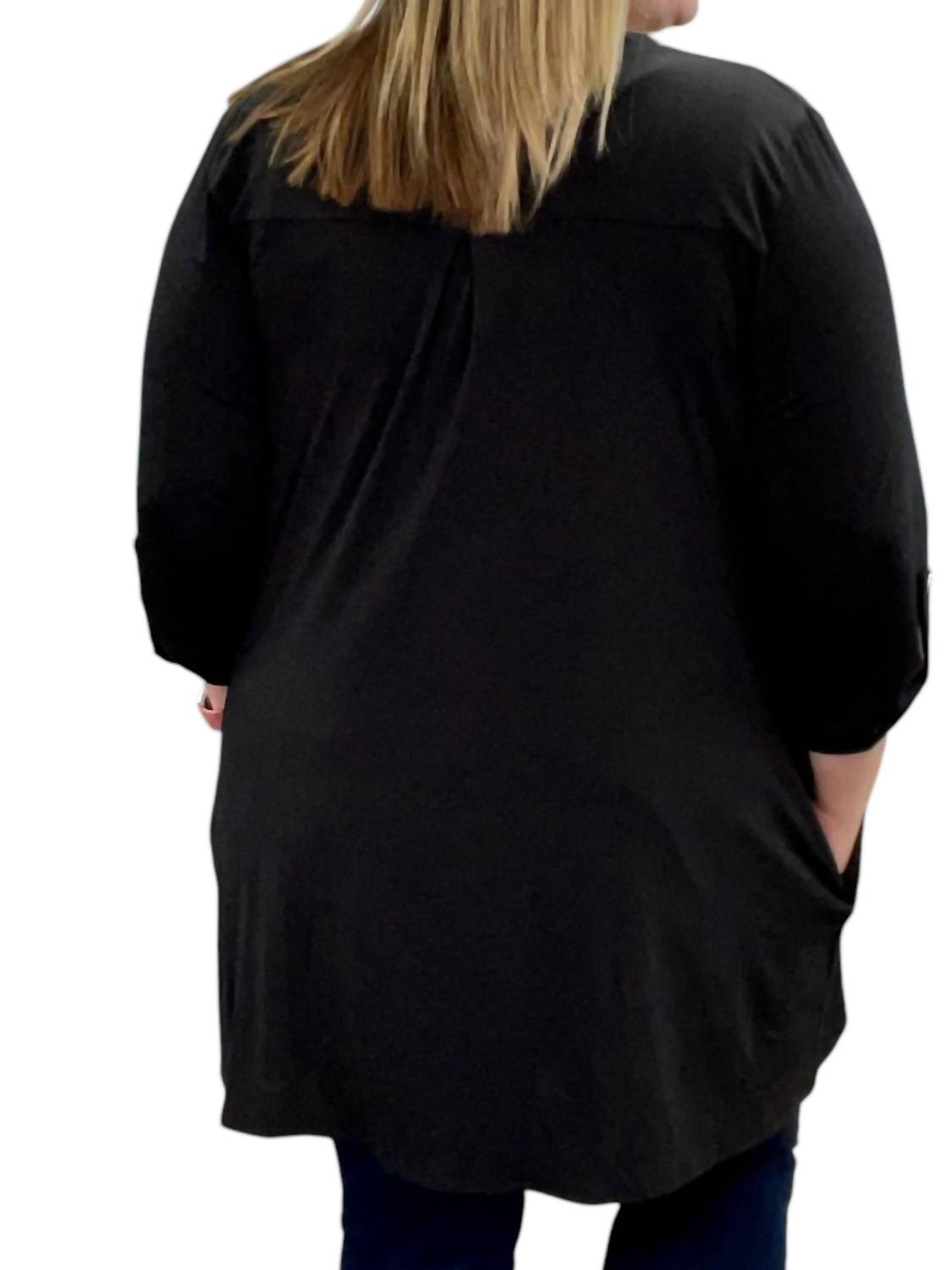Легкая ткань. Боковые карманы для дополнительного удобства. Драпированный шаль спереди для изысканного вида. Легко надевать и снимать. Длинная длина до середины бедра со струящимся низом для полного покрытия. 95% полиэстер и 5% спандекс.