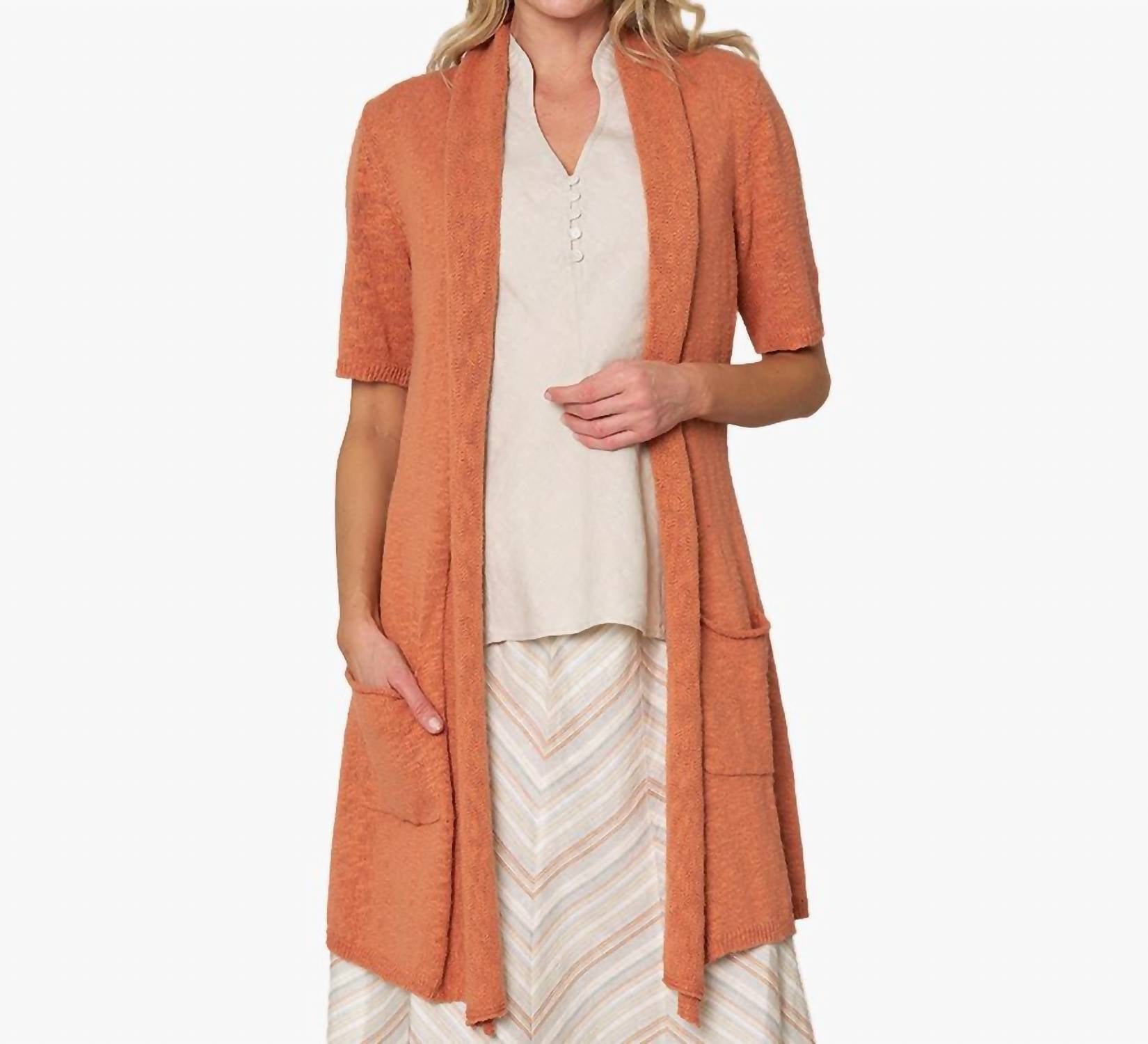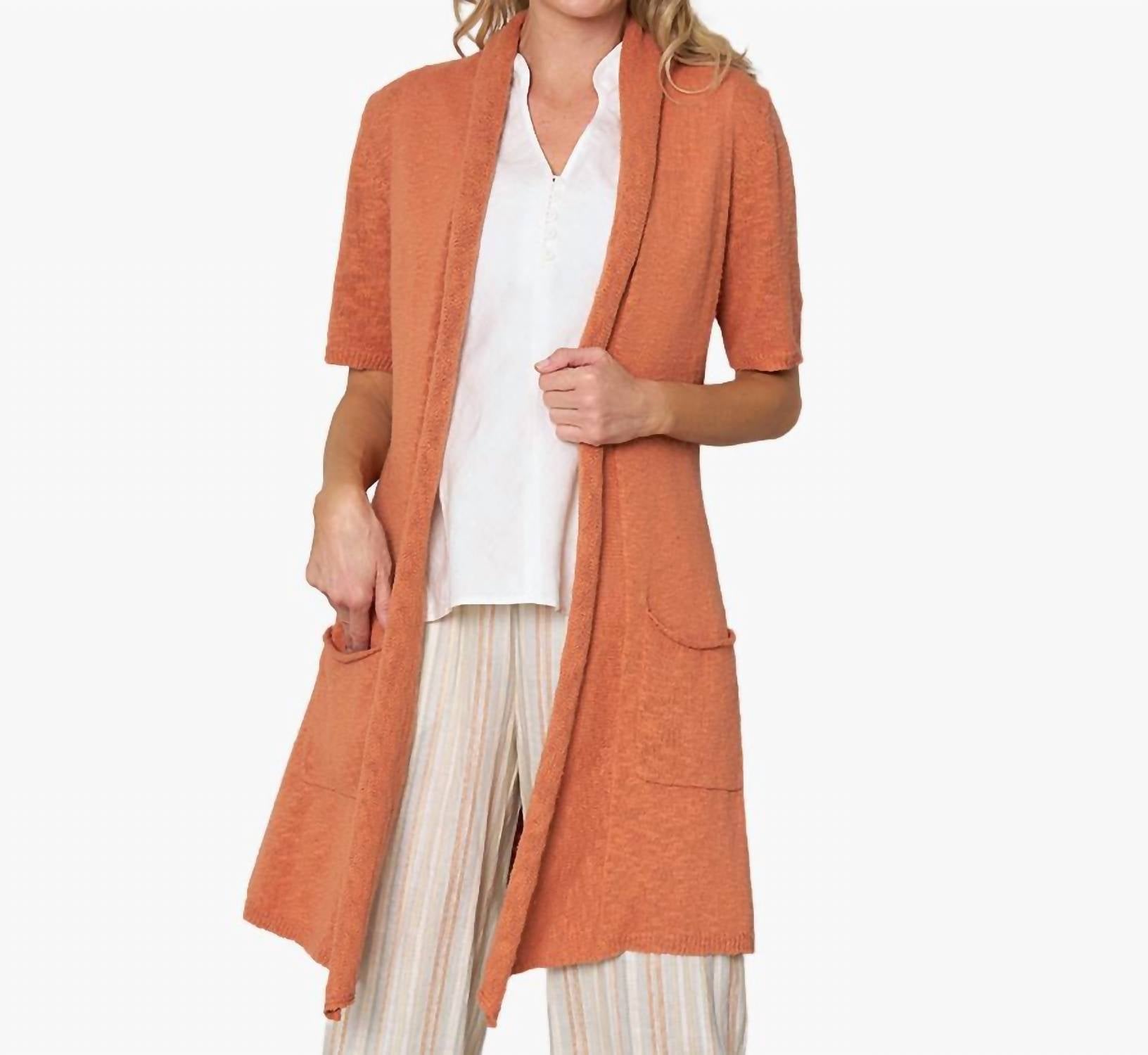 Хлопковая пряжа Slub. Рукава длиной до локтя и открытый перед, воротник-шале. Практичные накладные карманы. Длина по спинке составляет около 32 дюймов для размера S. Модель ростом 5 футов 11 дюймов носит размер S. 100% хлопок Slub. Импортируется. Ручная стирка, сушить в разложенном виде.